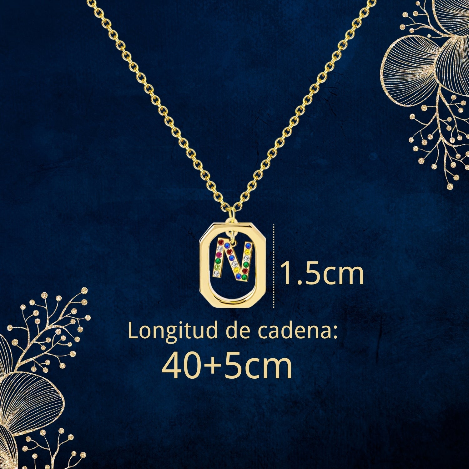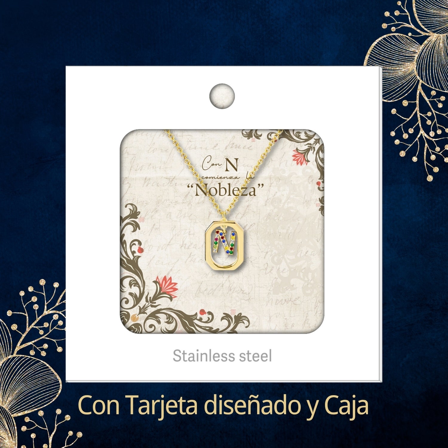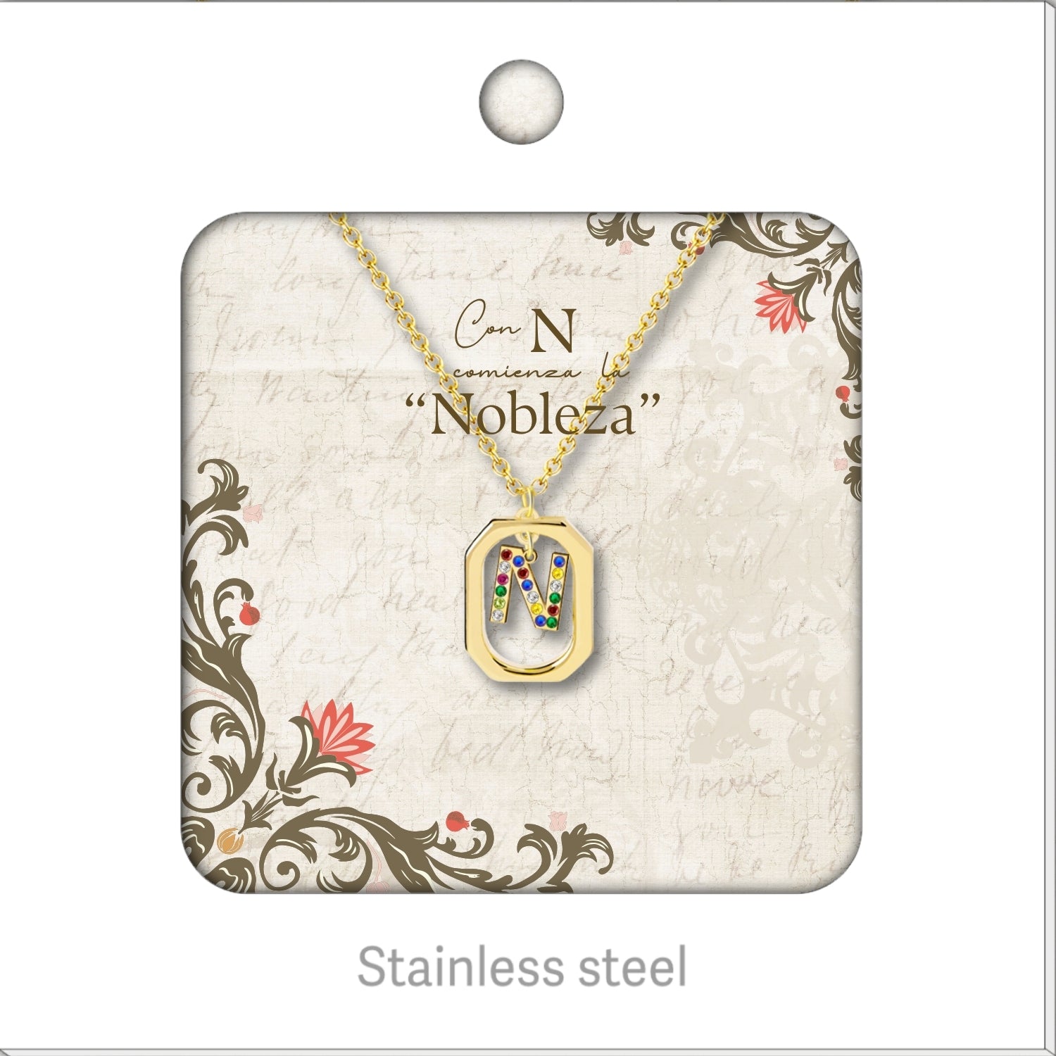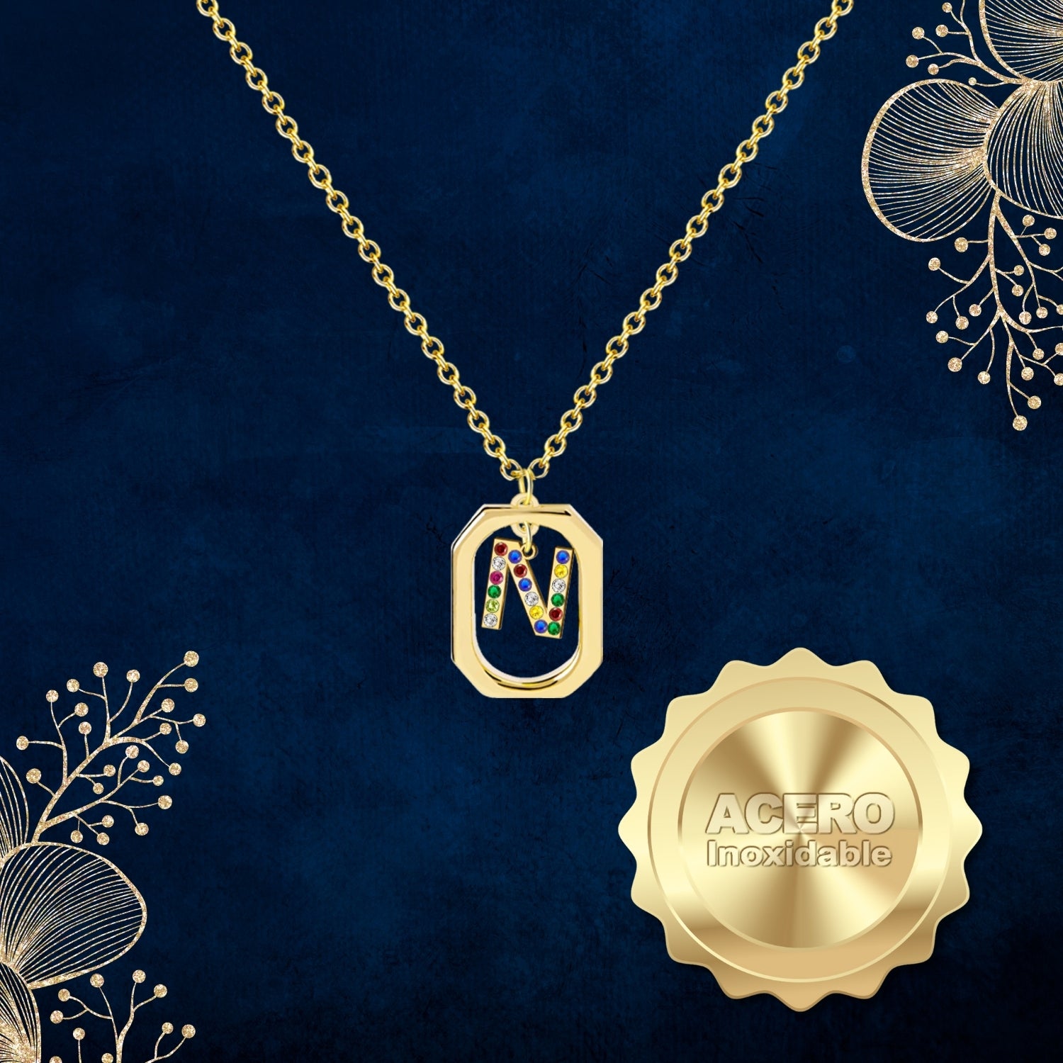 Colgante Letra Inicial N Acero con Circonita color Dorado