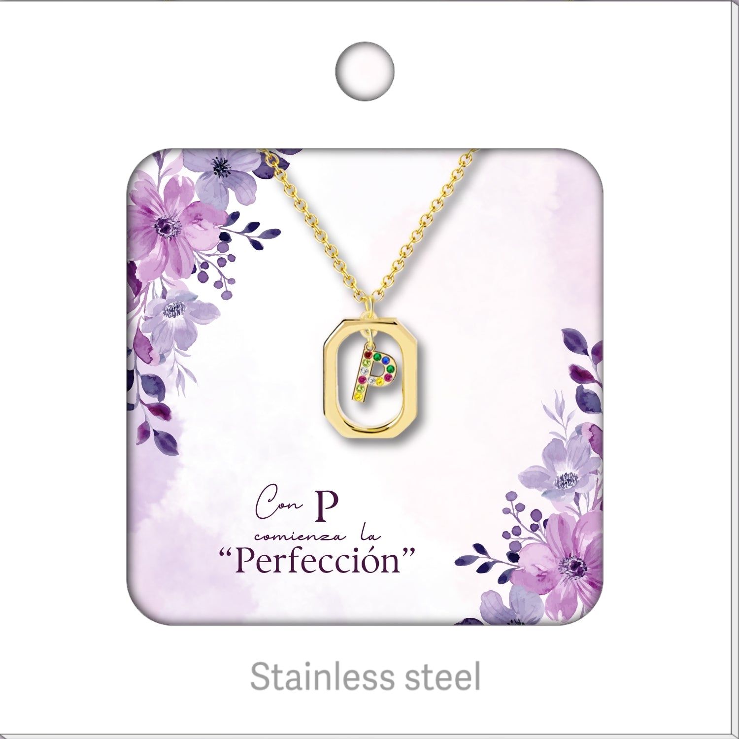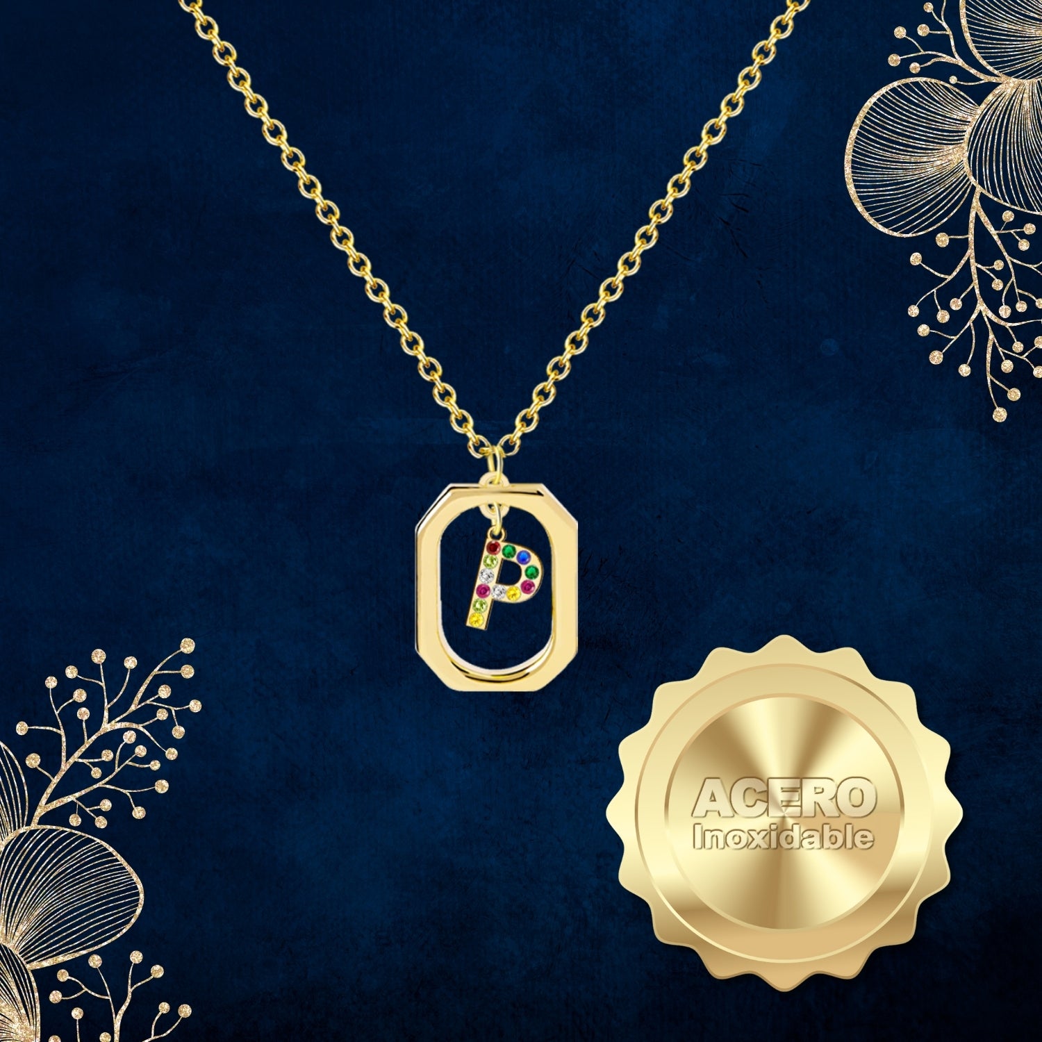 Colgante Letra Inicial P Acero con Circonita color Dorado