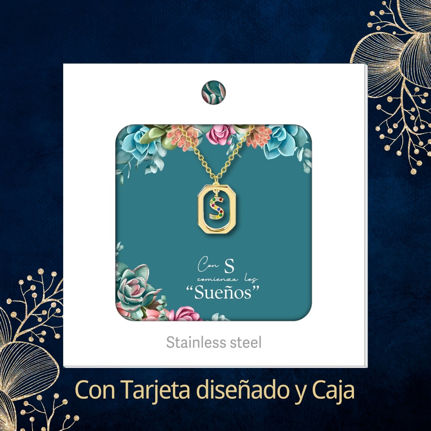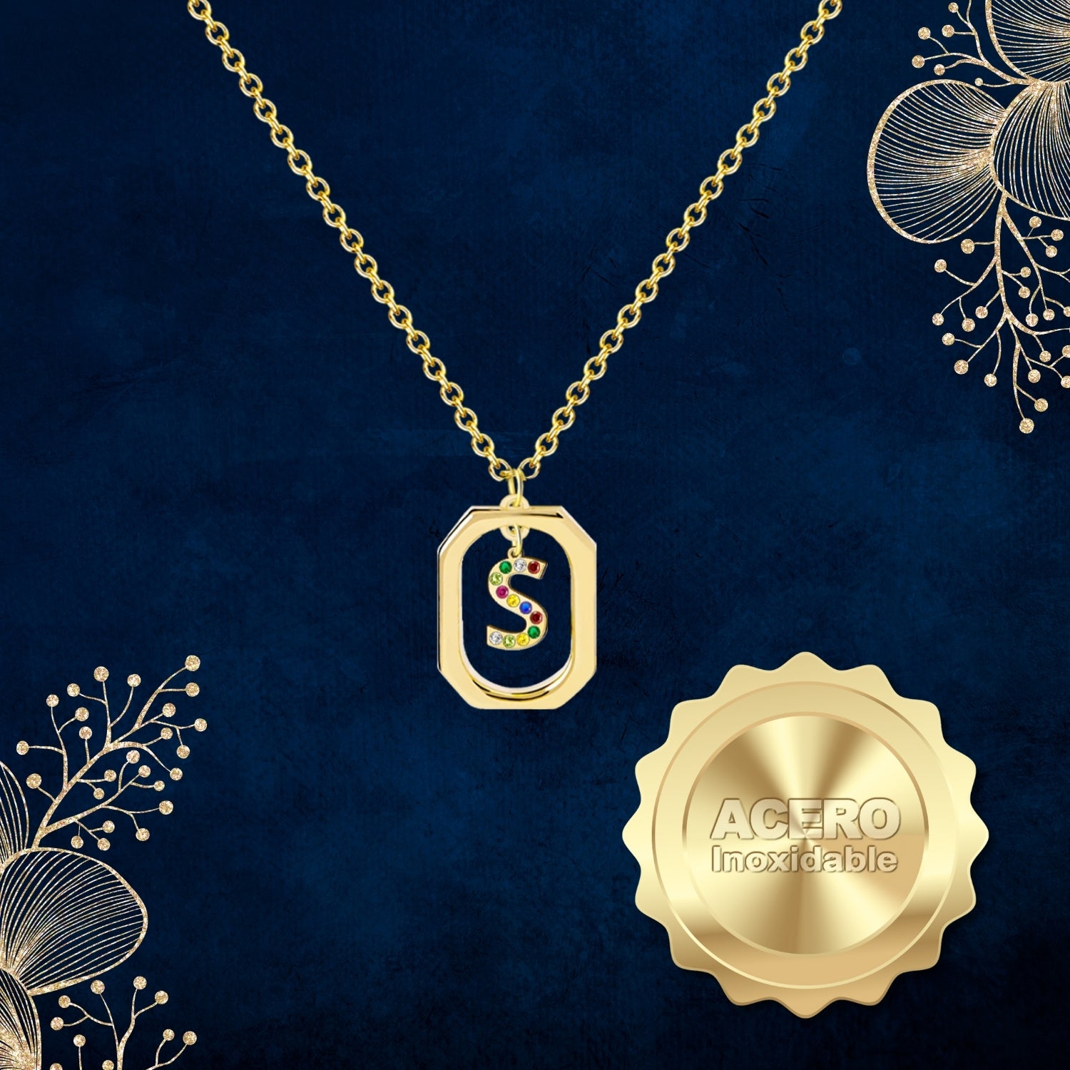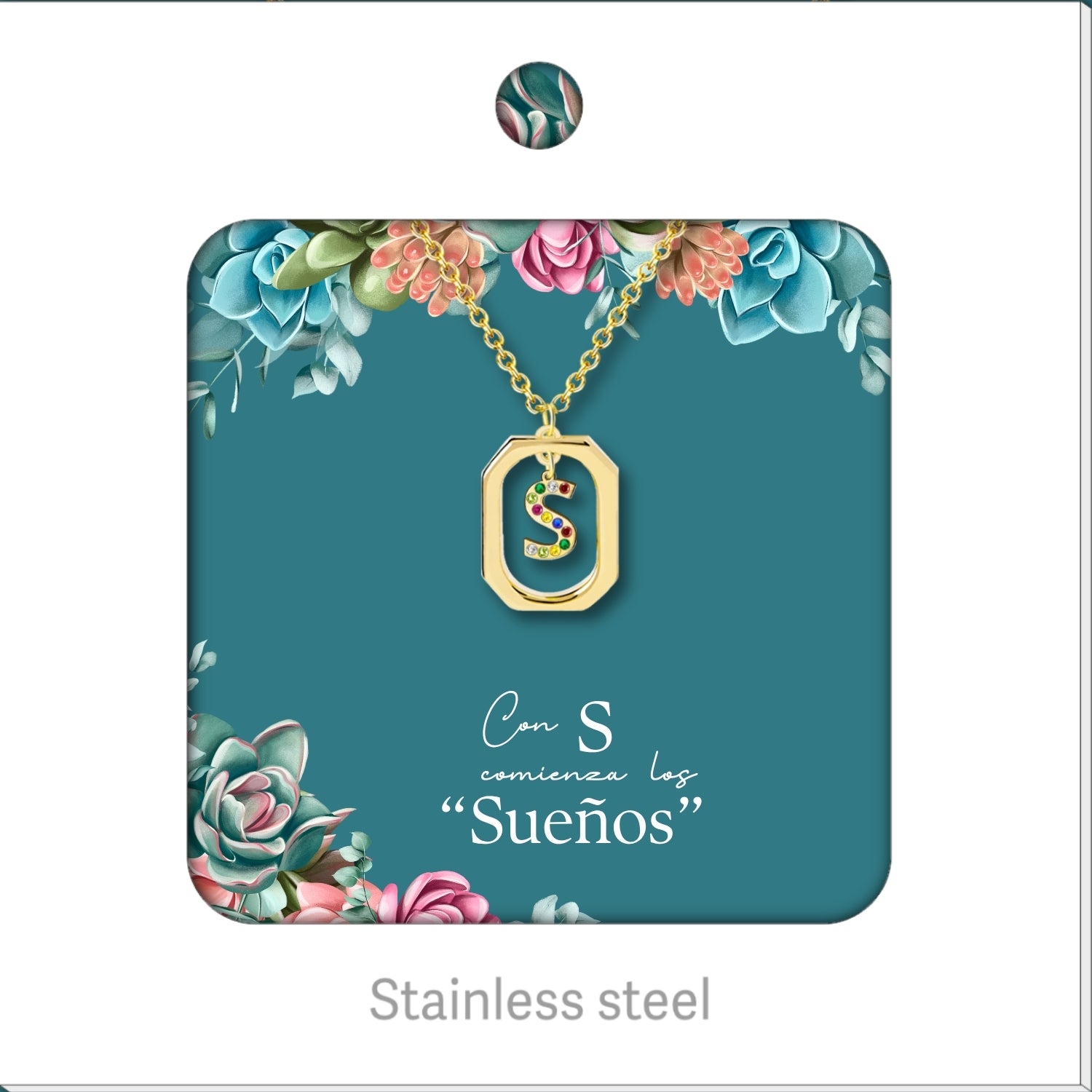 Colgante Letra Inicial S Acero con Circonita color Dorado