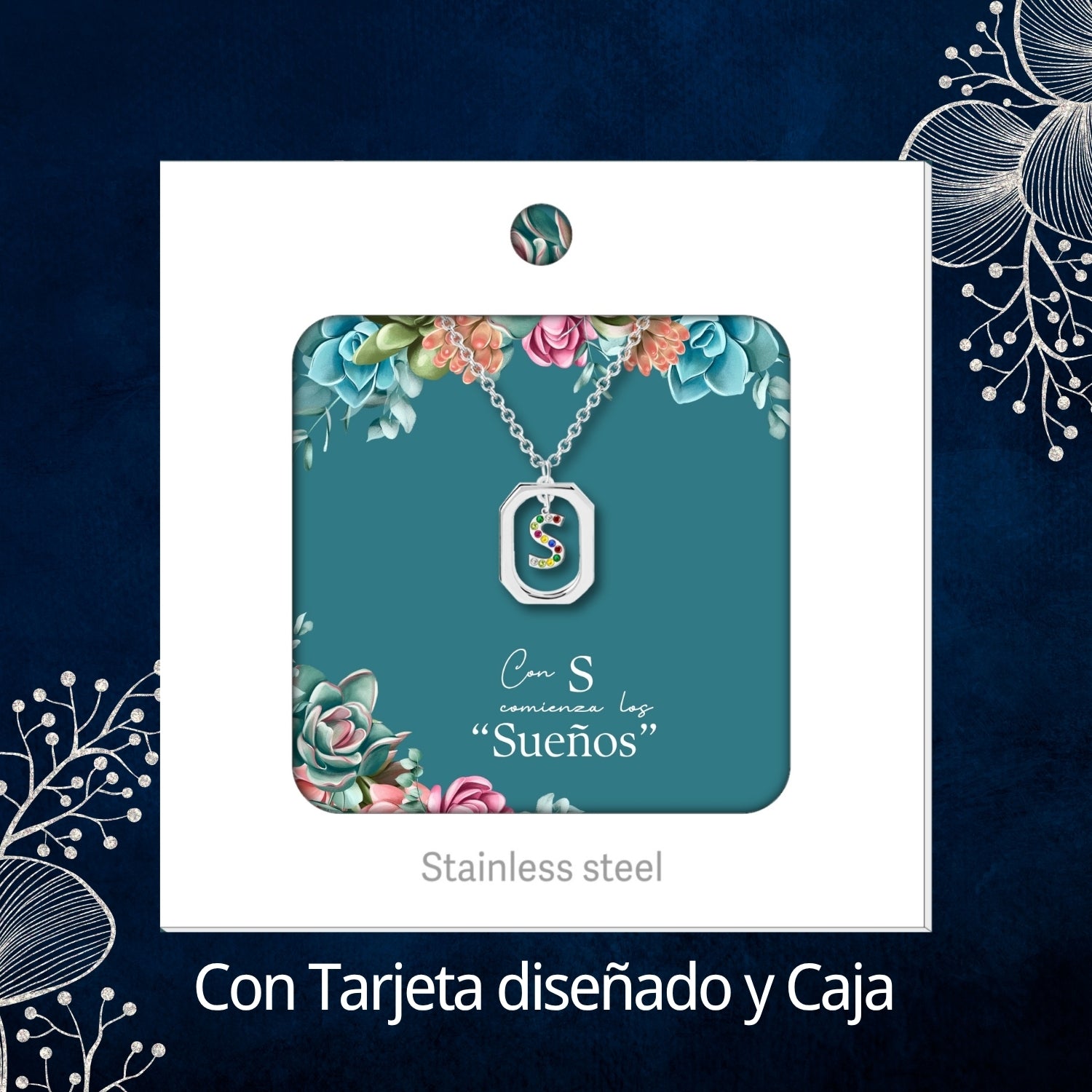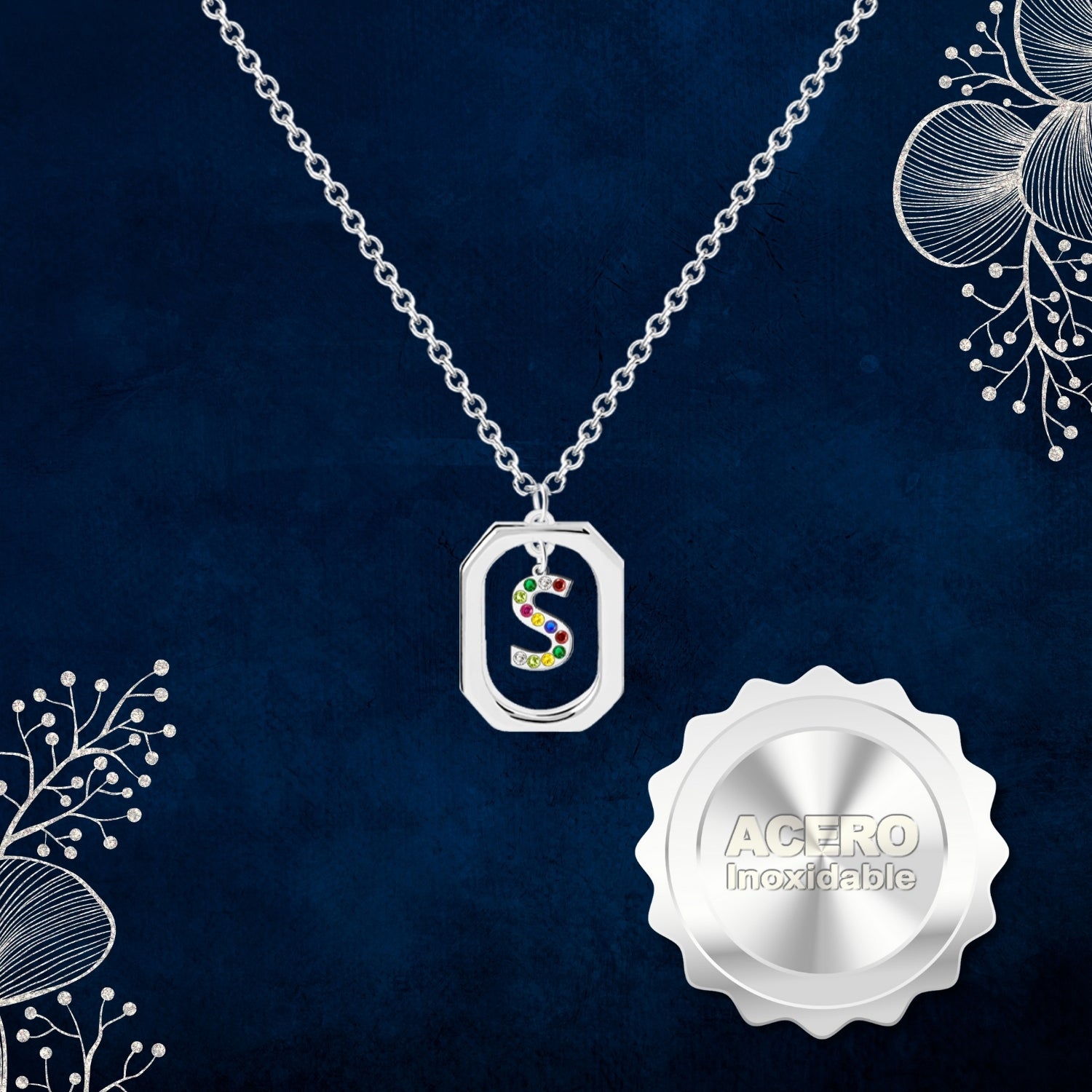 Colgante Letra Inicial S Acero con Circonita color Plateado
