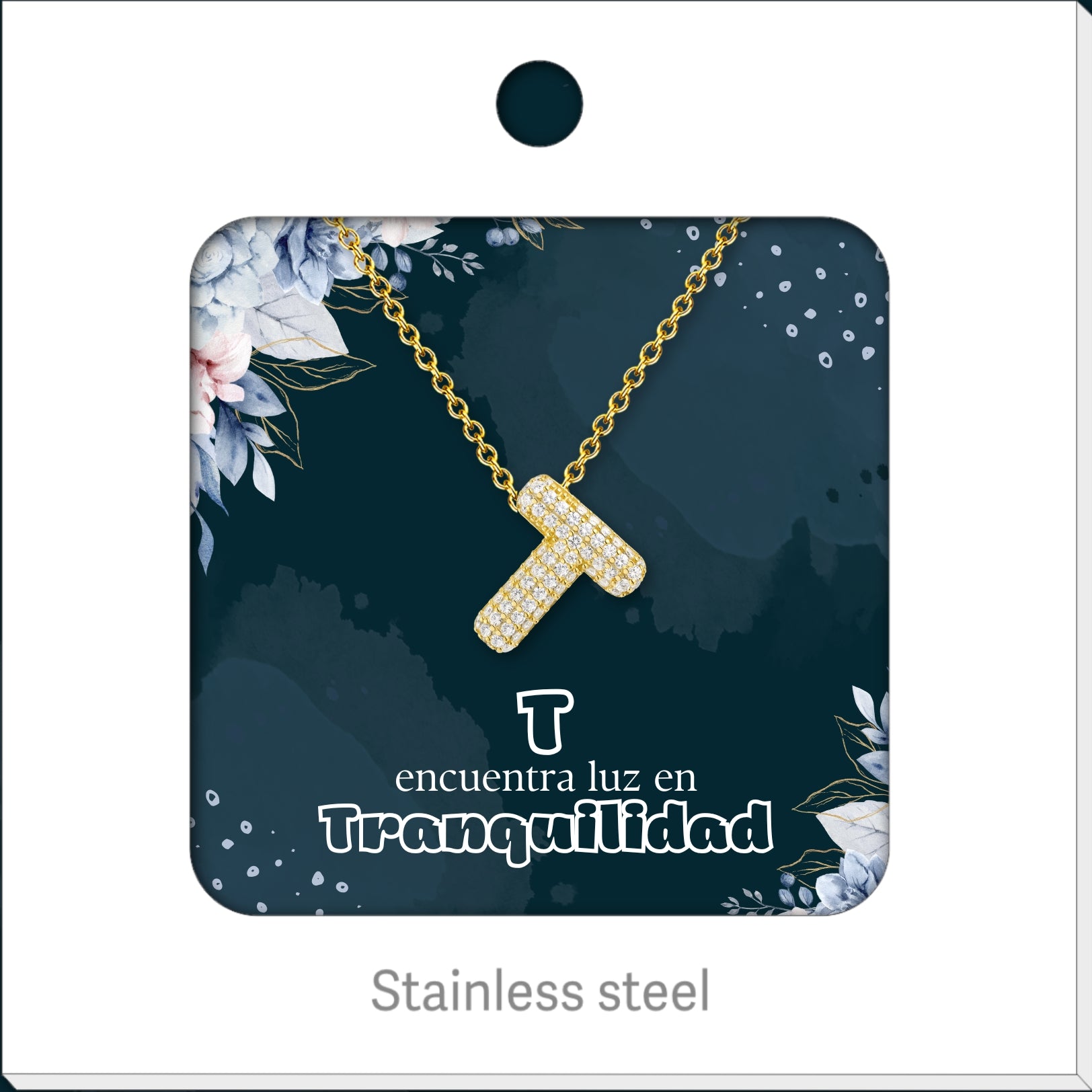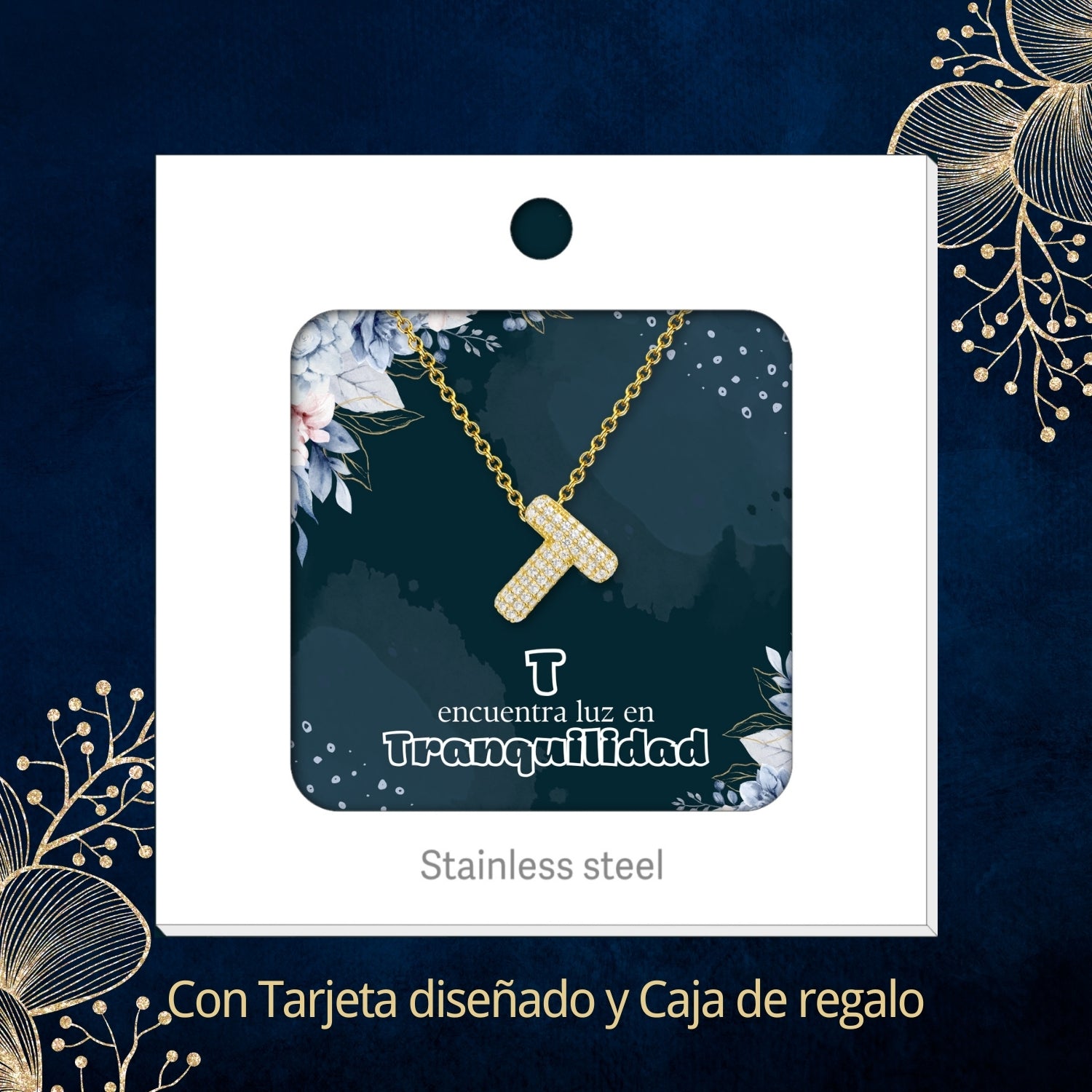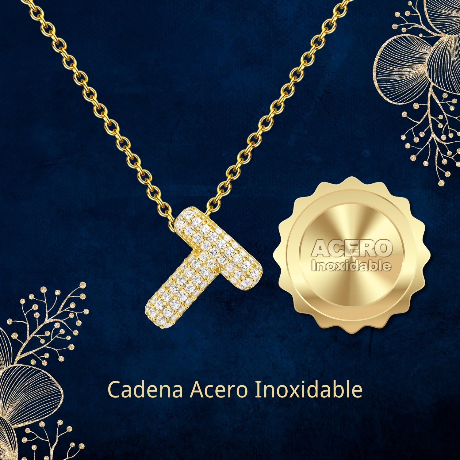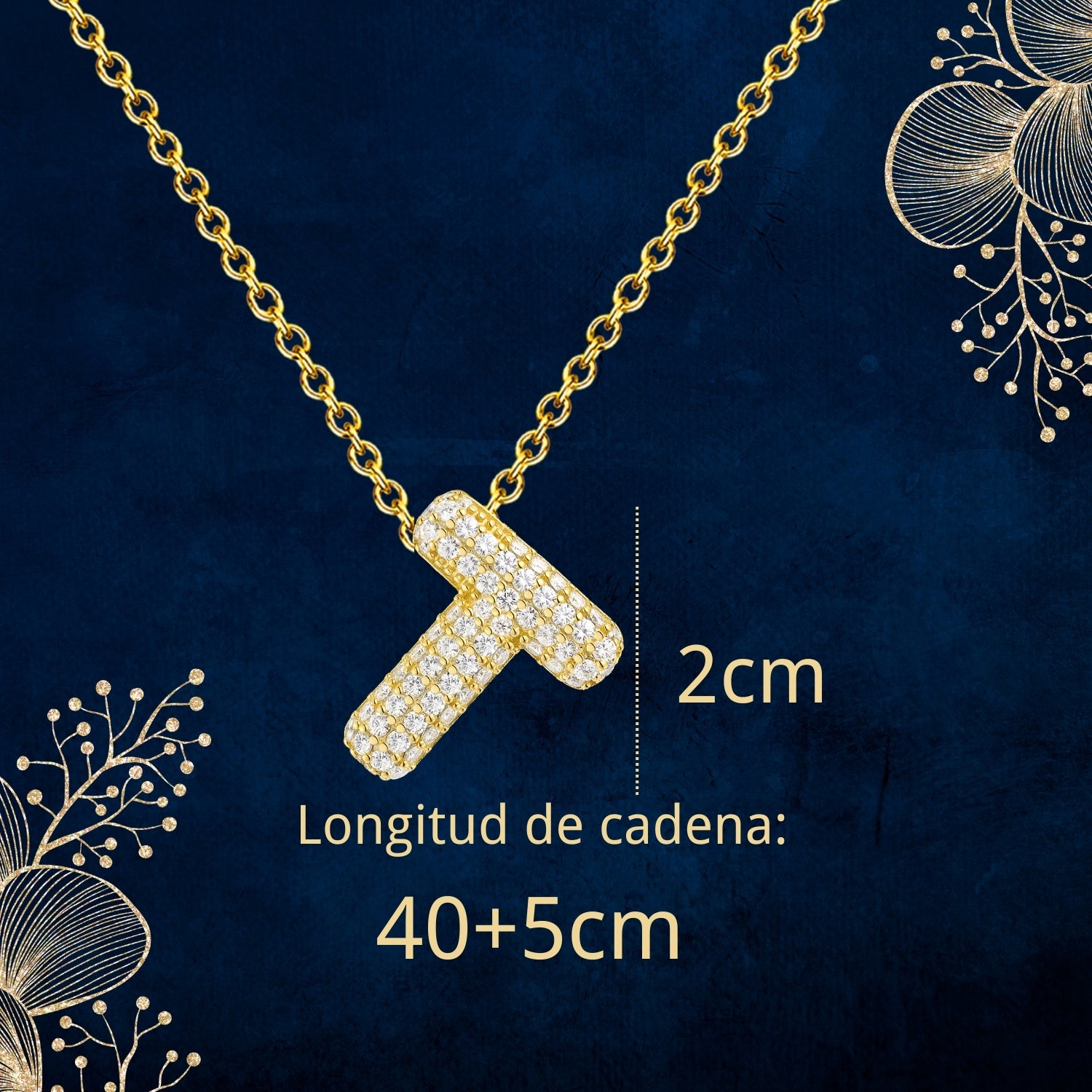 ✨ Collar Letra Inicial con Circonitas – Colgante elegante con diseño de letra inicial, adornado con brillantes piedras circonitas que aportan luz y estilo único.