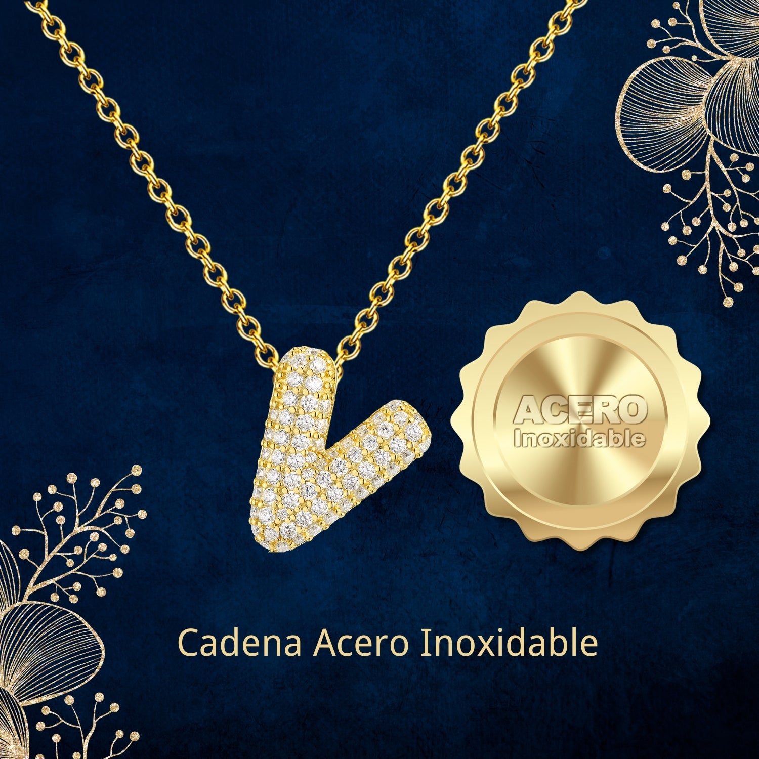 ✨ Collar Letra Inicial con Circonitas – Colgante elegante con diseño de letra inicial, adornado con brillantes piedras circonitas que aportan luz y estilo único.