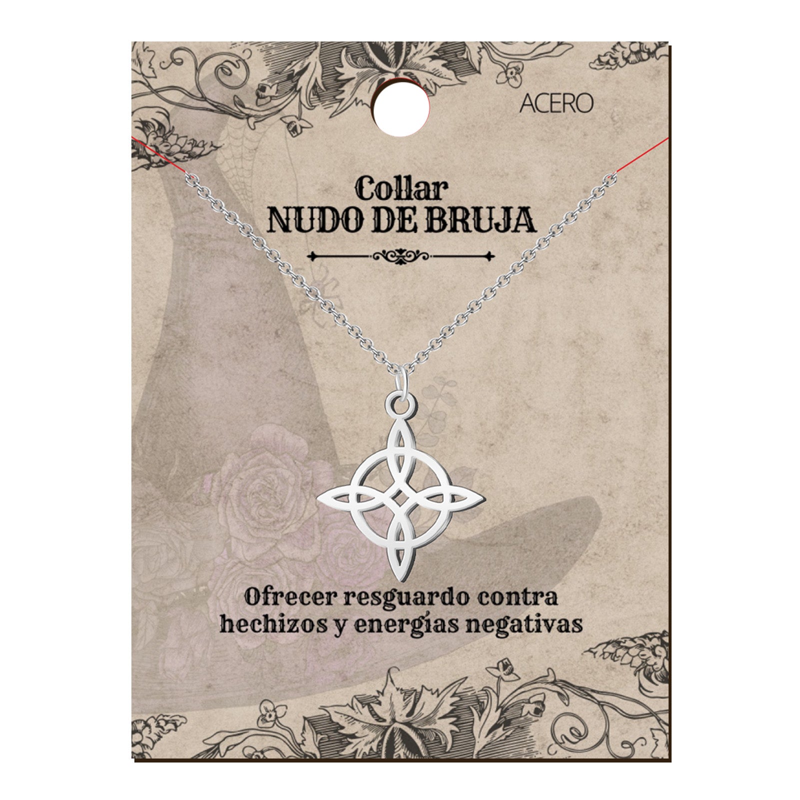 - ᯽ COLLAR NUDO DE BRUJA CON LUNA DE ACERO INOXIDABLE DORADO: Este nudo de bruja significado, fusiona el simbolismo espiritual clásico del amuleto celta con el poder de la luna. Este collar de proteccion es ideal tanto para uso diario como para ocasiones especiales.