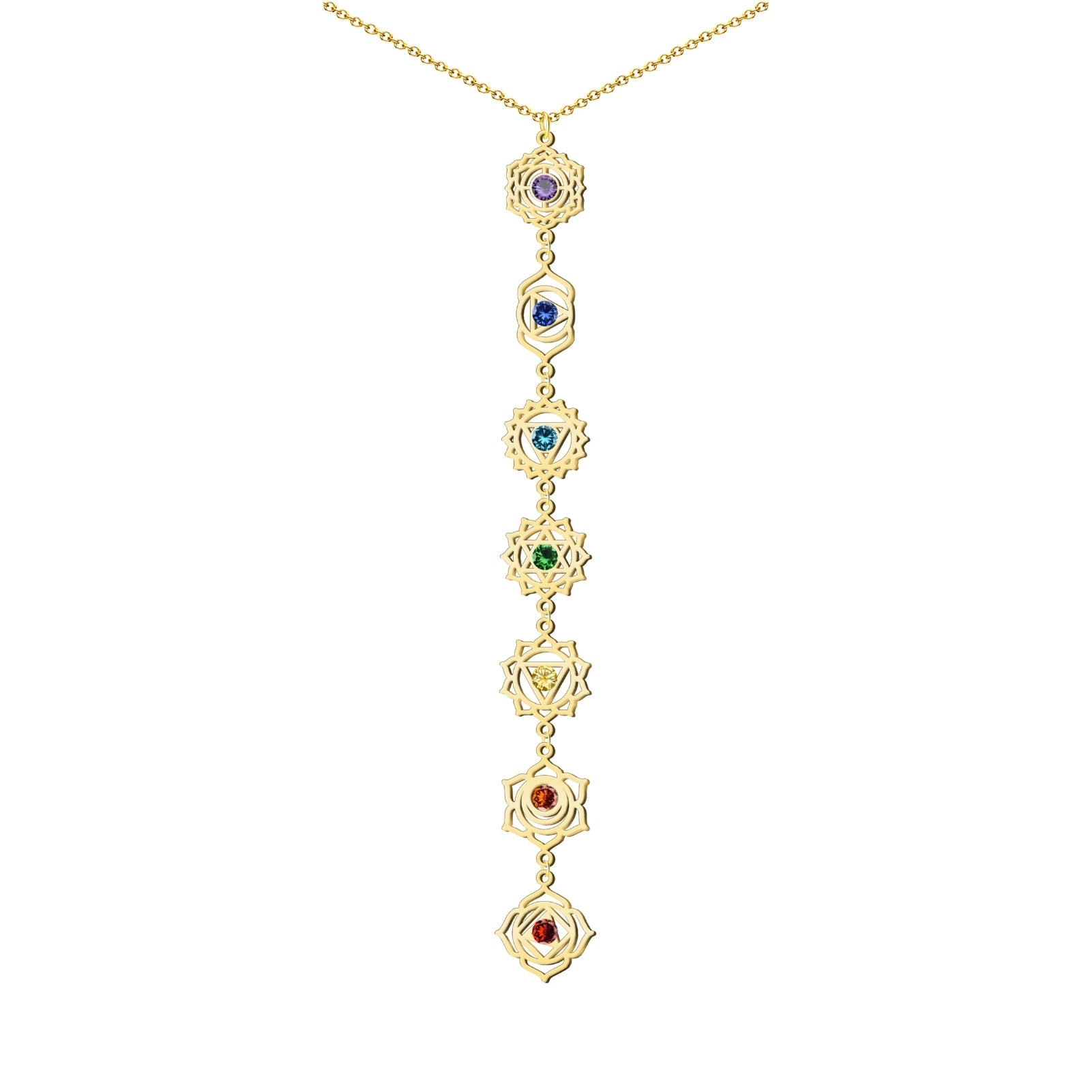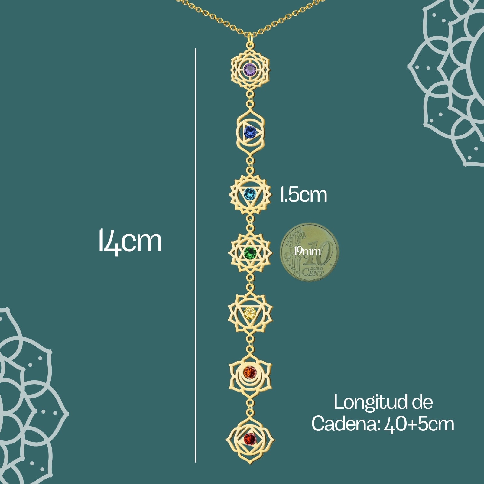 Collar 7 Chakras Acero Inoxidable , color Dorado✨ Amuleto Energético con Regalo Pulsera Nudo de Bruja