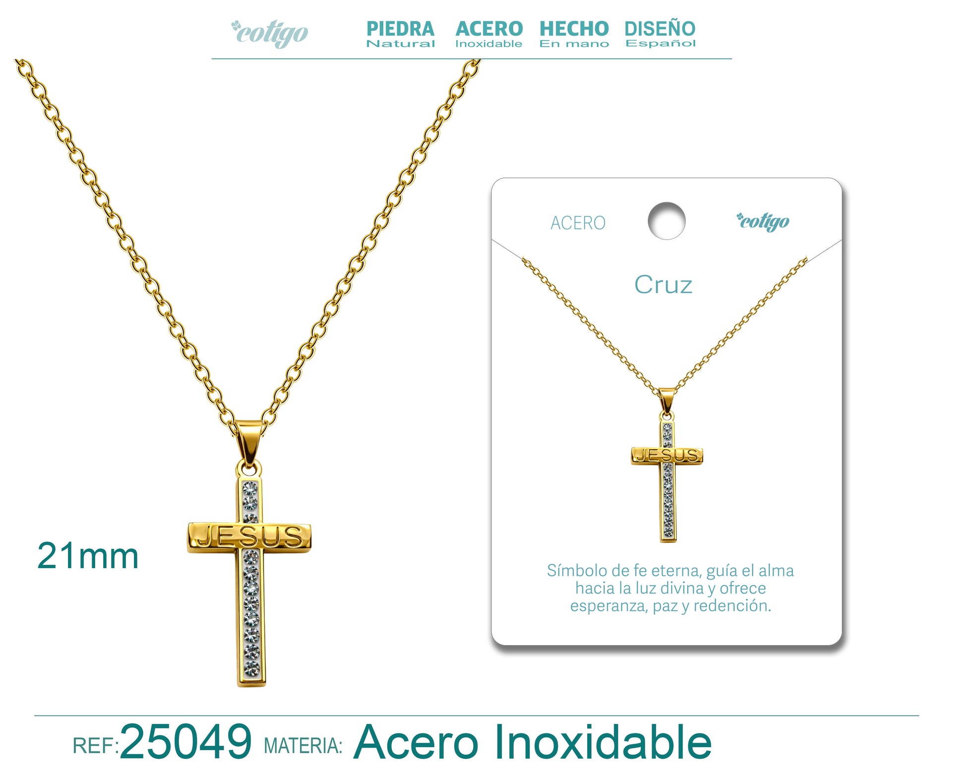 Collar con Cruz grabado con Sagrada Escritura en Acero Dorado