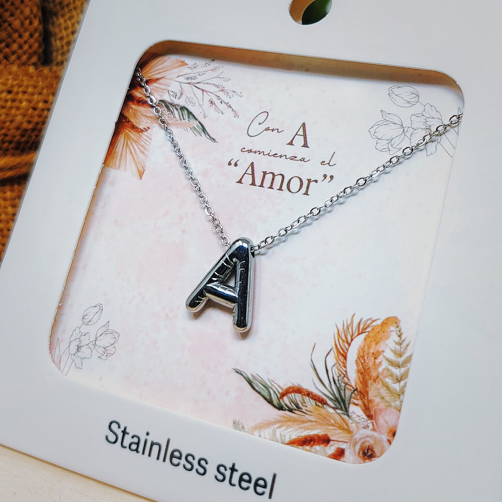 Eleva tu colección de accesorios con este colgante de acero inspirado en el arte pop. Un diseño que captura miradas y simboliza momentos especiales bajo el concepto "Con A comienza el Amor". ¡Consigue el tuyo!
