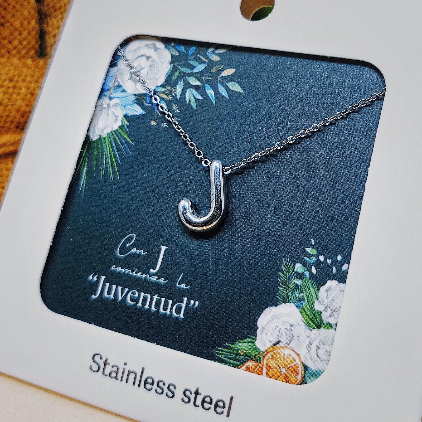 Expresa tu identidad con el diseño más fresco del momento: nuestro collar inicial de la letra J. Con su inconfundible estética de globo y un acabado plateado ultra brillante, esta joya de acero inoxidable es la elección definitiva para quienes valoran un estilo contemporáneo, versátil y extremadamente resistente.
