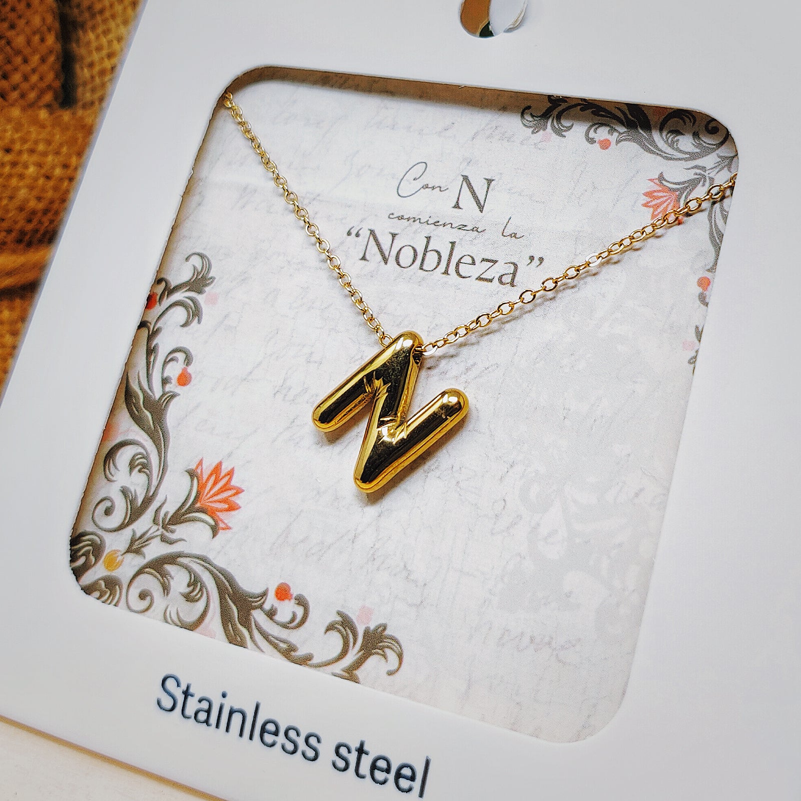 Elegancia volumétrica: Collar Letra N con Baño de Oro 14k