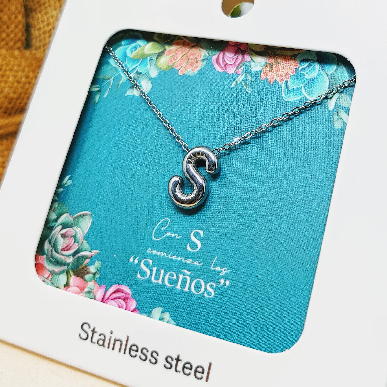 Expresa tu estilo único con el accesorio del momento: nuestro collar inicial de la letra S. Con su inconfundible estética de globo y un acabado plateado ultra brillante, esta joya de acero inoxidable es la elección ideal para quienes buscan un diseño contemporáneo, fresco y muy versátil.