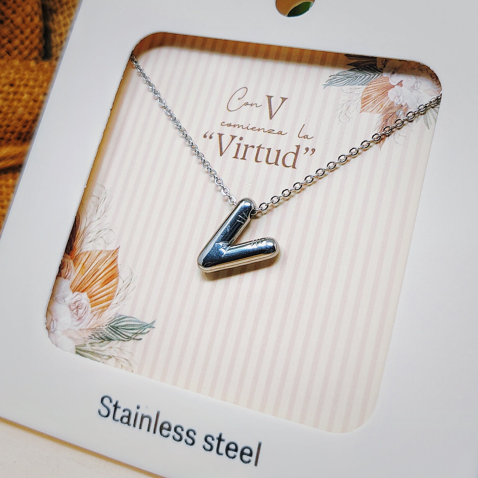 Collar Letra Inicial V Estilo Globo en Acero Inoxidable