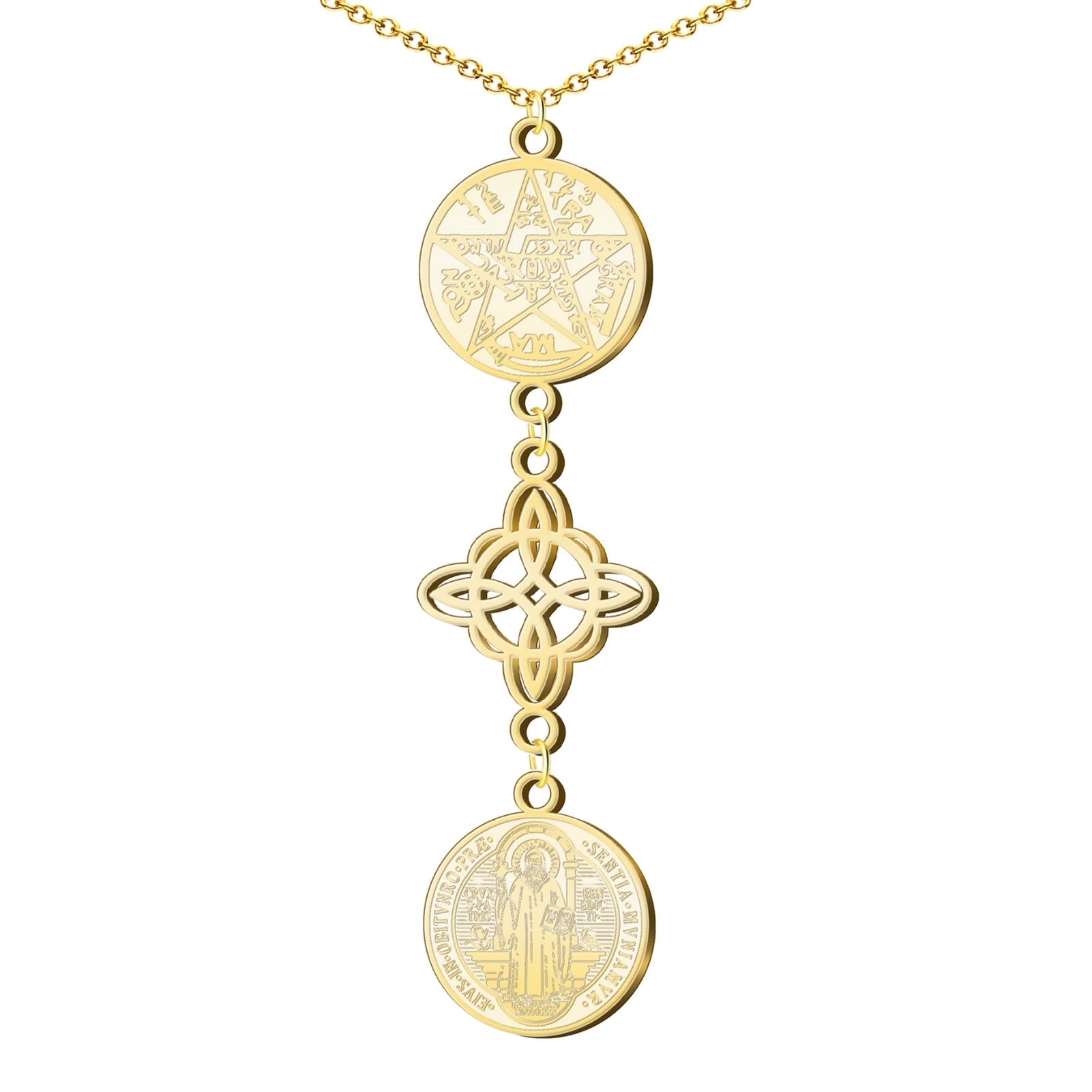 Collar Tetragramatón con Nudo de Bruja y Medalla de San Benito, Acero Inoxidable✨ Amuleto de Protección y Energía Positiva en Acero Inoxidable