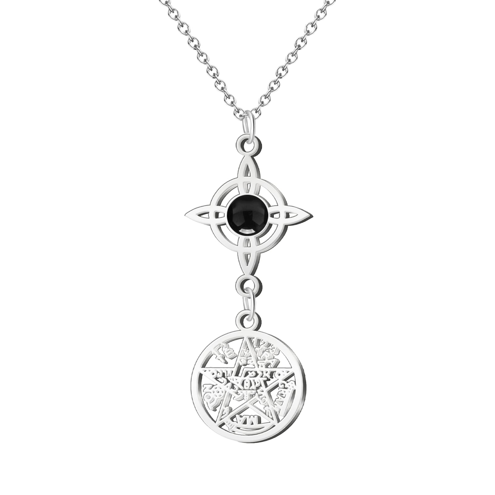 Colgante Tetragrammatón con Nudo de Bruja y Ágata Negra – Protección Profunda y Estabilidad en Acero Inoxidable