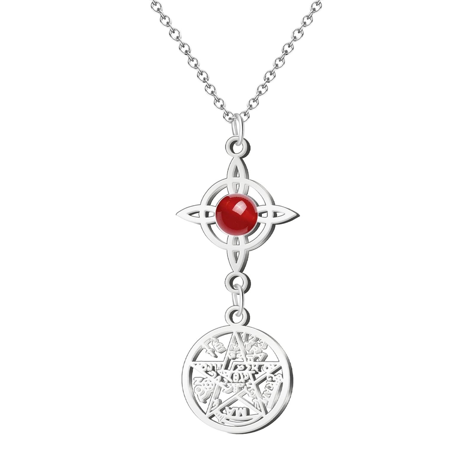 Colgante Tetragrammatón con Nudo de Bruja y Carneola – Energía, Motivación y Fuerza Vital en Acero Inoxidable