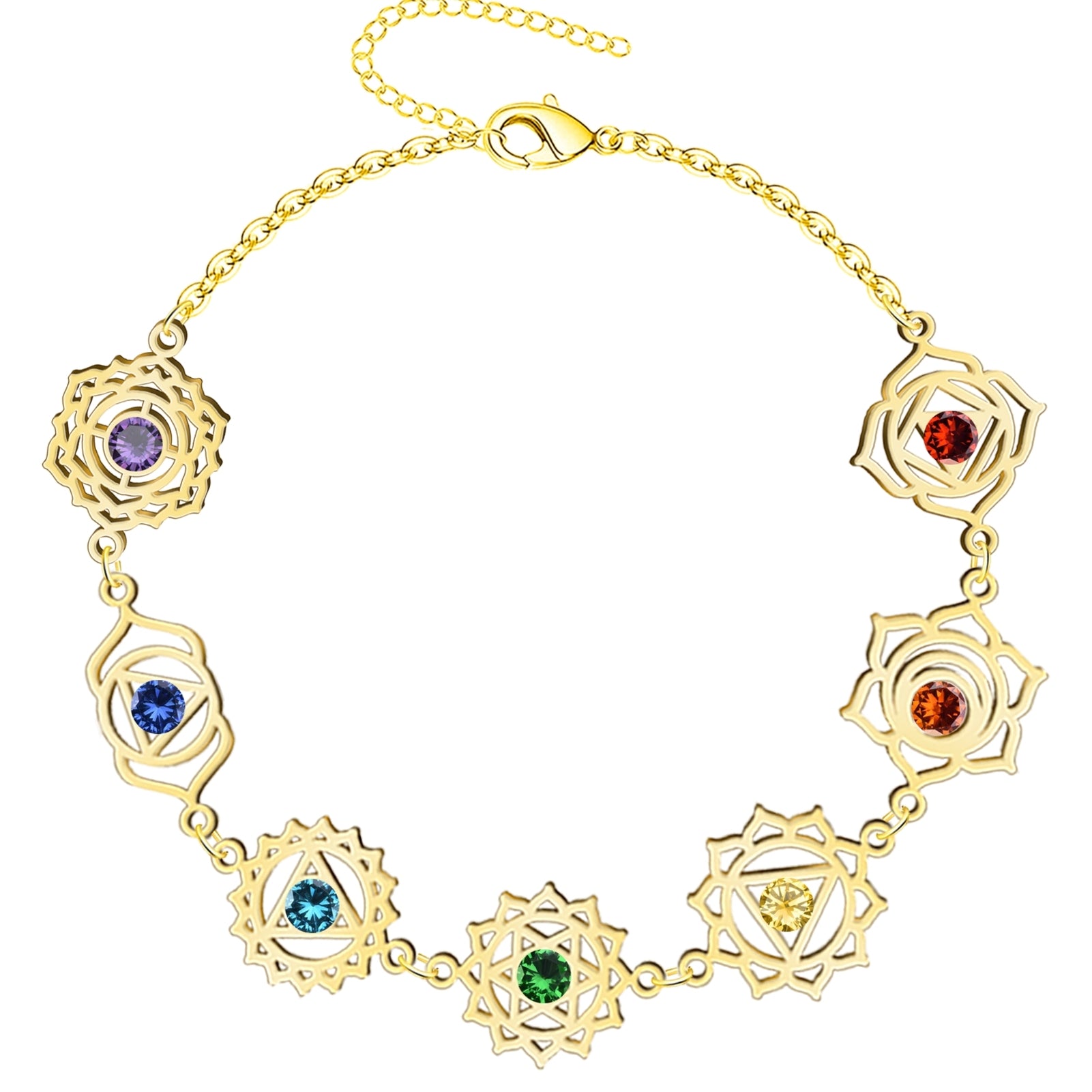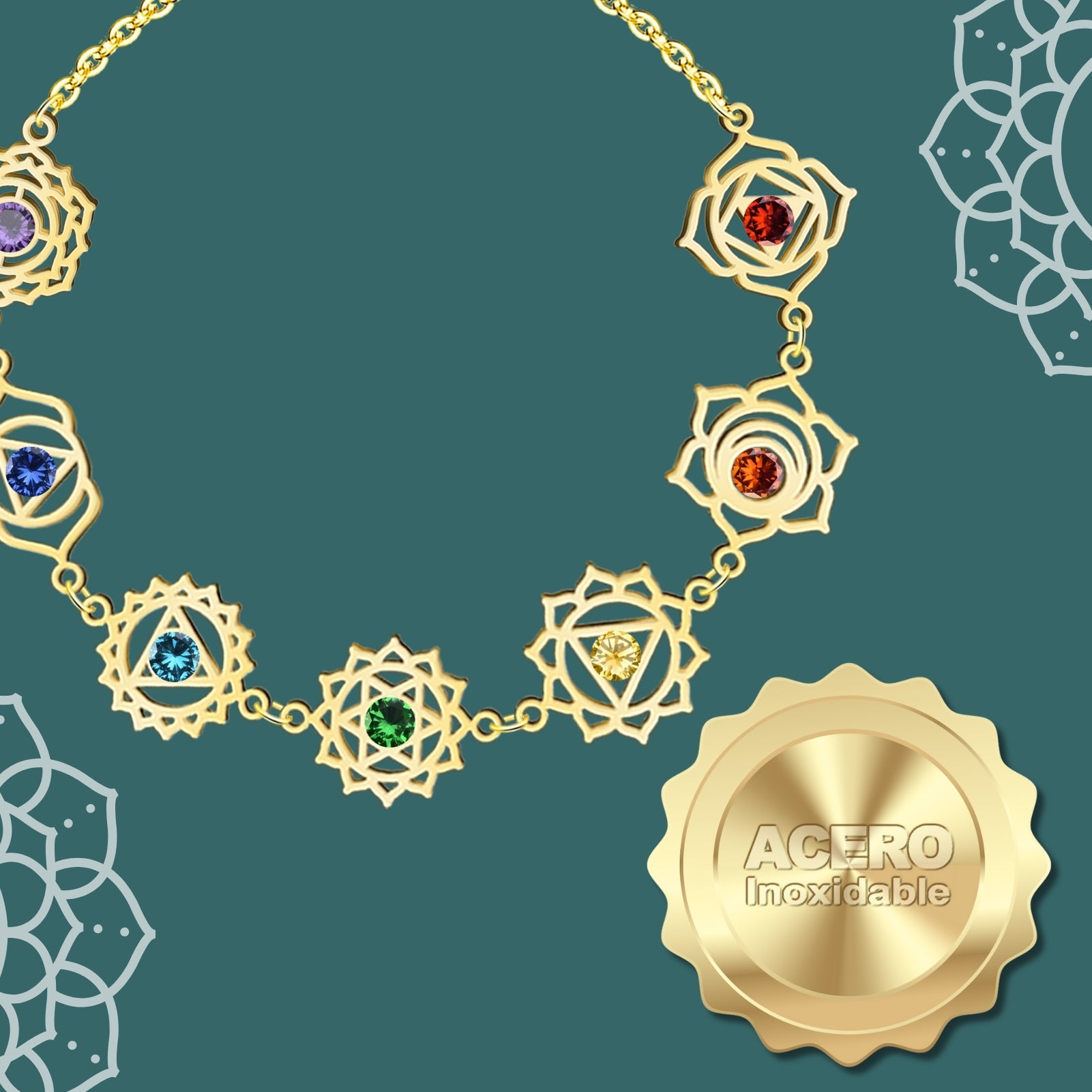 Pulsera 7 Chakras Acero Inoxidable , color Dorado✨ Amuleto Energético con Regalo Pulsera Nudo de Bruja