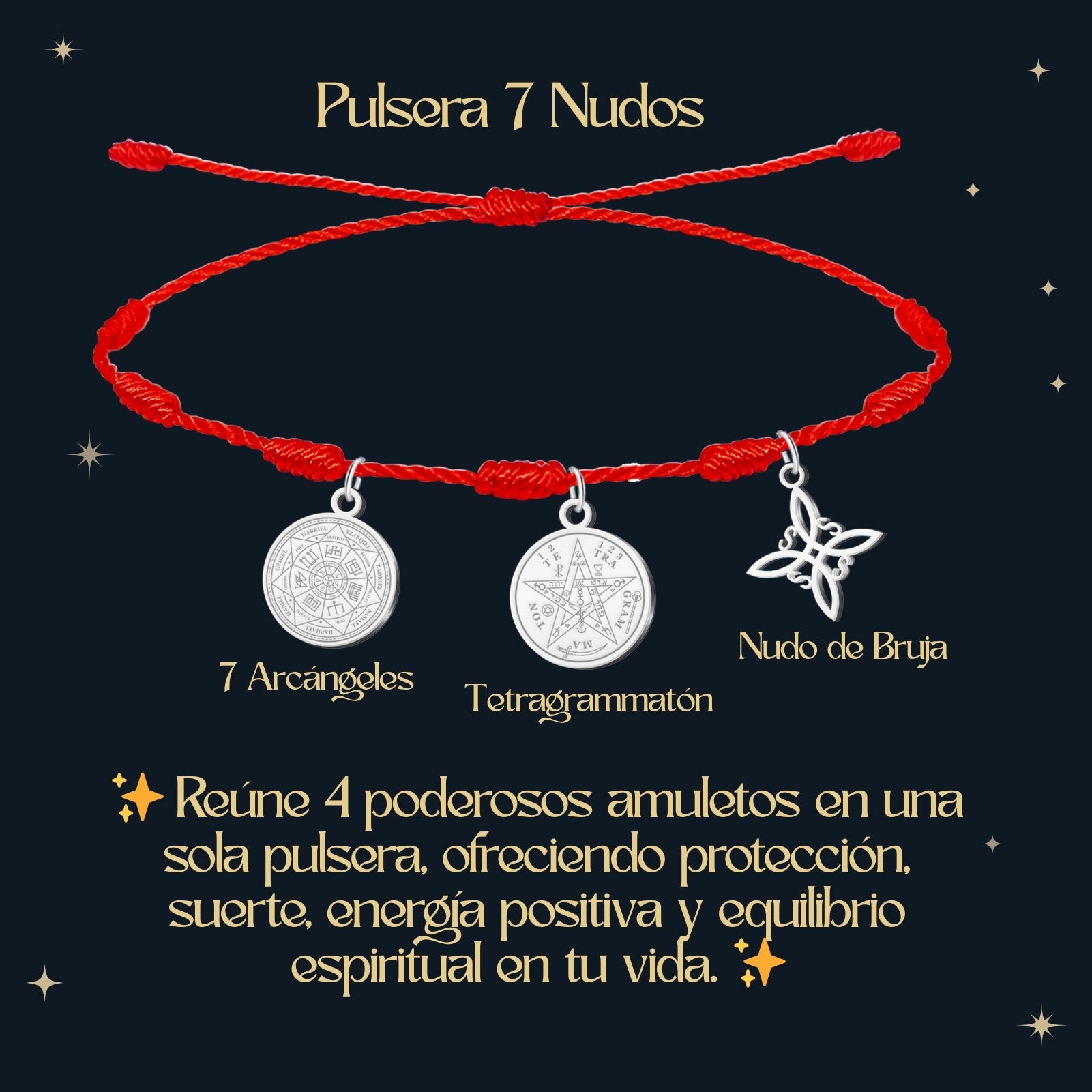 Esta pulsera combina el poder de los 7 nudos protectores con el Nudo de Bruja y el símbolo sagrado del Tetragramatón, atrayendo protección y energía divina. Los 7 Arcángeles en tono plateado representan fuerza, fe y luz espiritual. Fabricada en acero inoxidable de alta calidad, resistente al agua y al desgaste. Un amuleto poderoso contra las energías negativas. 🎁 Incluye un colgante de Nudo de Bruja de regalo.