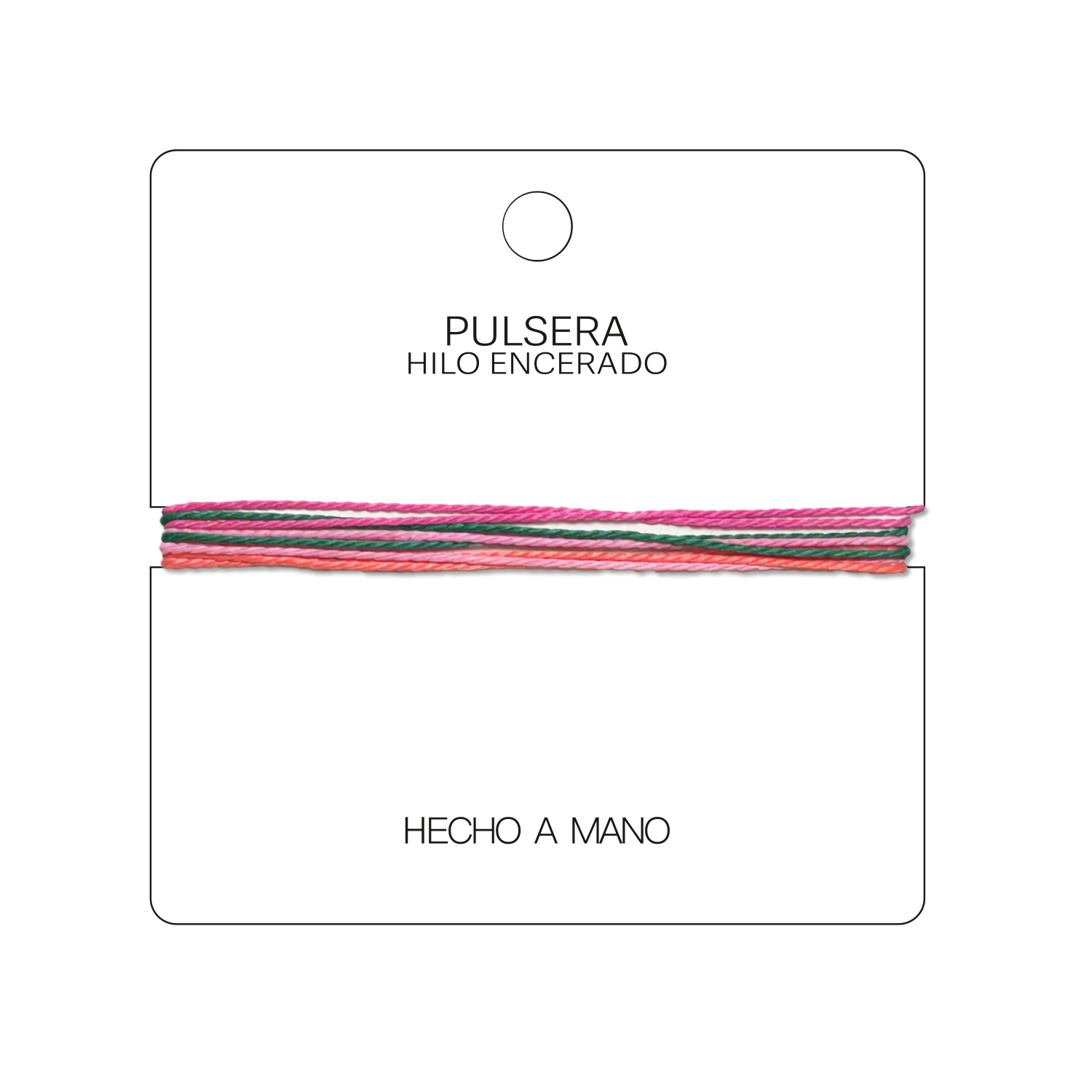 Hibisco - Pulsera Surfista de Hilo Encerado - Rosa, Rojo y Verde