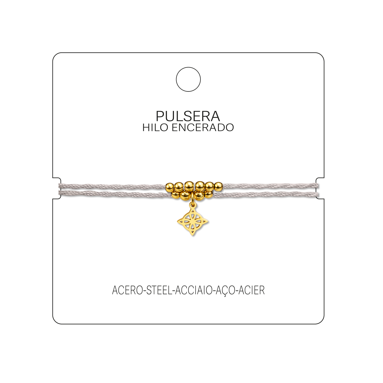 Pulsera Hilo encerado con Colgante Nudo de Bruja en Acero Dorado