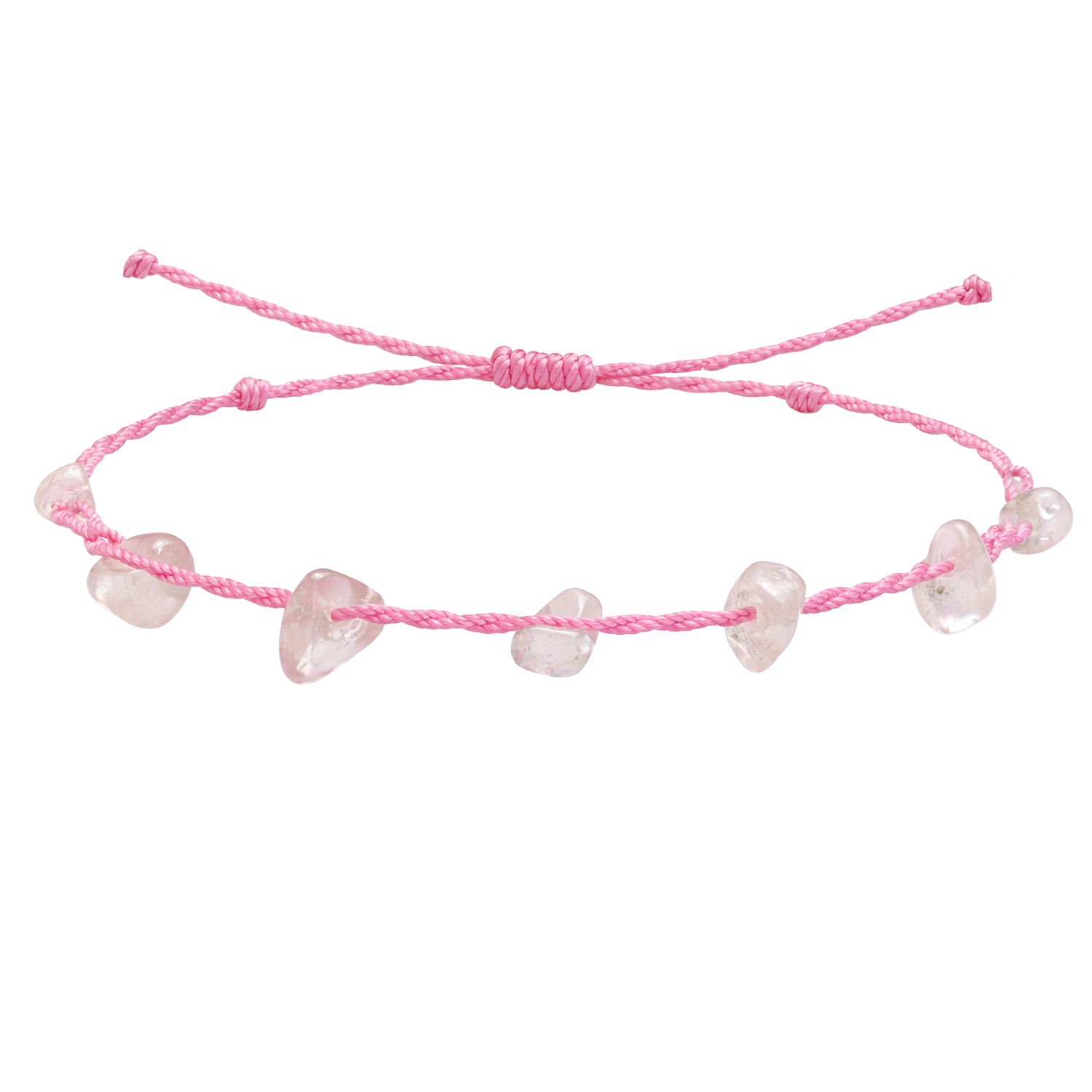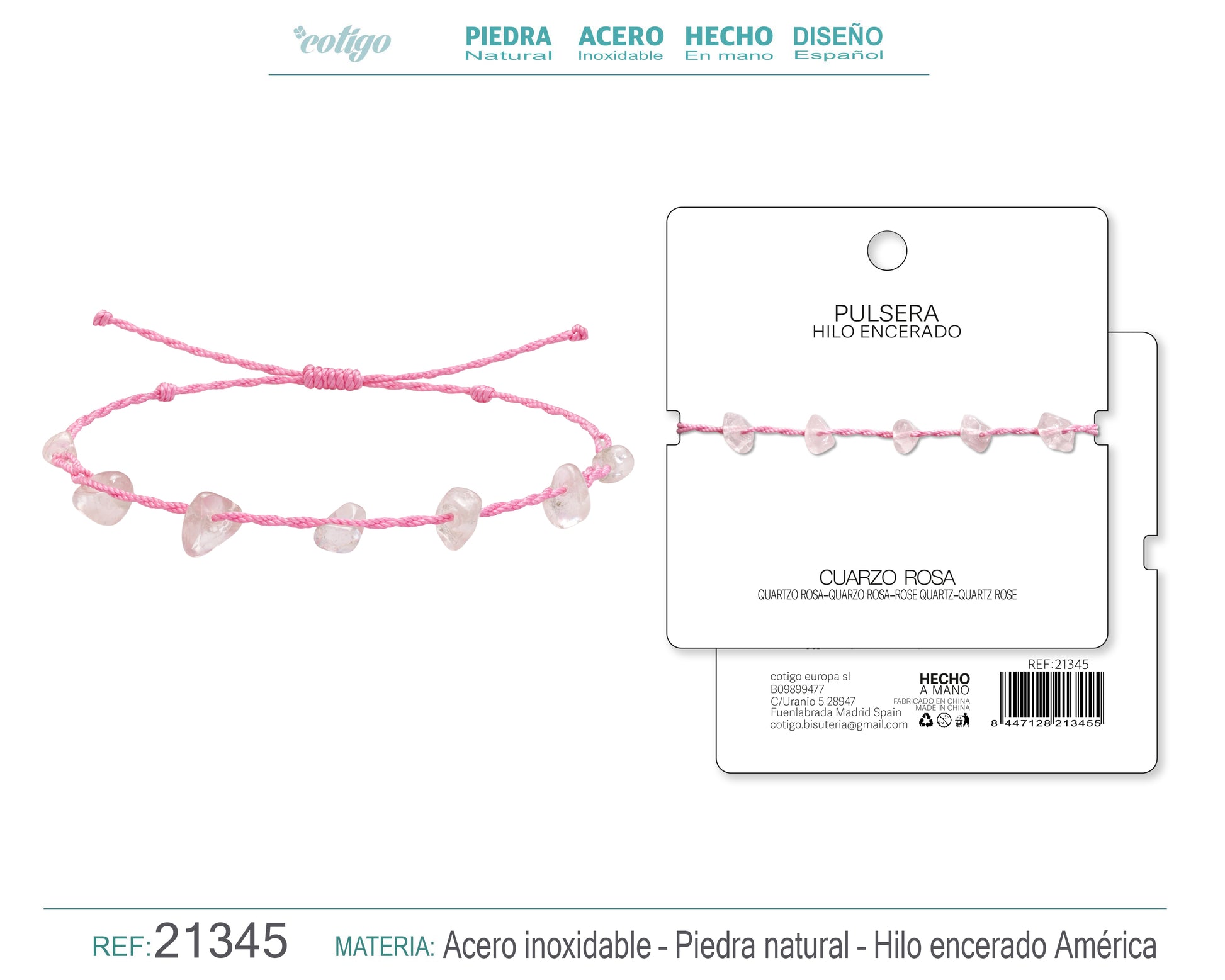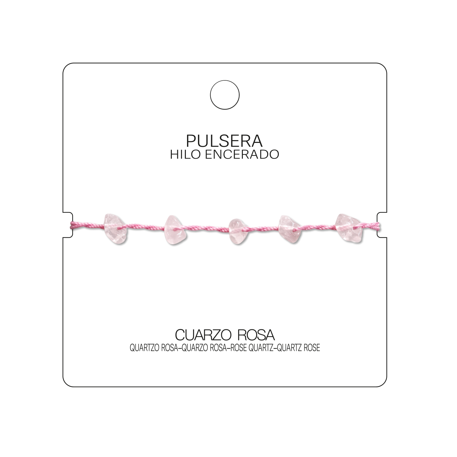 Pulsera Hilo encerado con Cuarzo Rosa - Chips de piedra