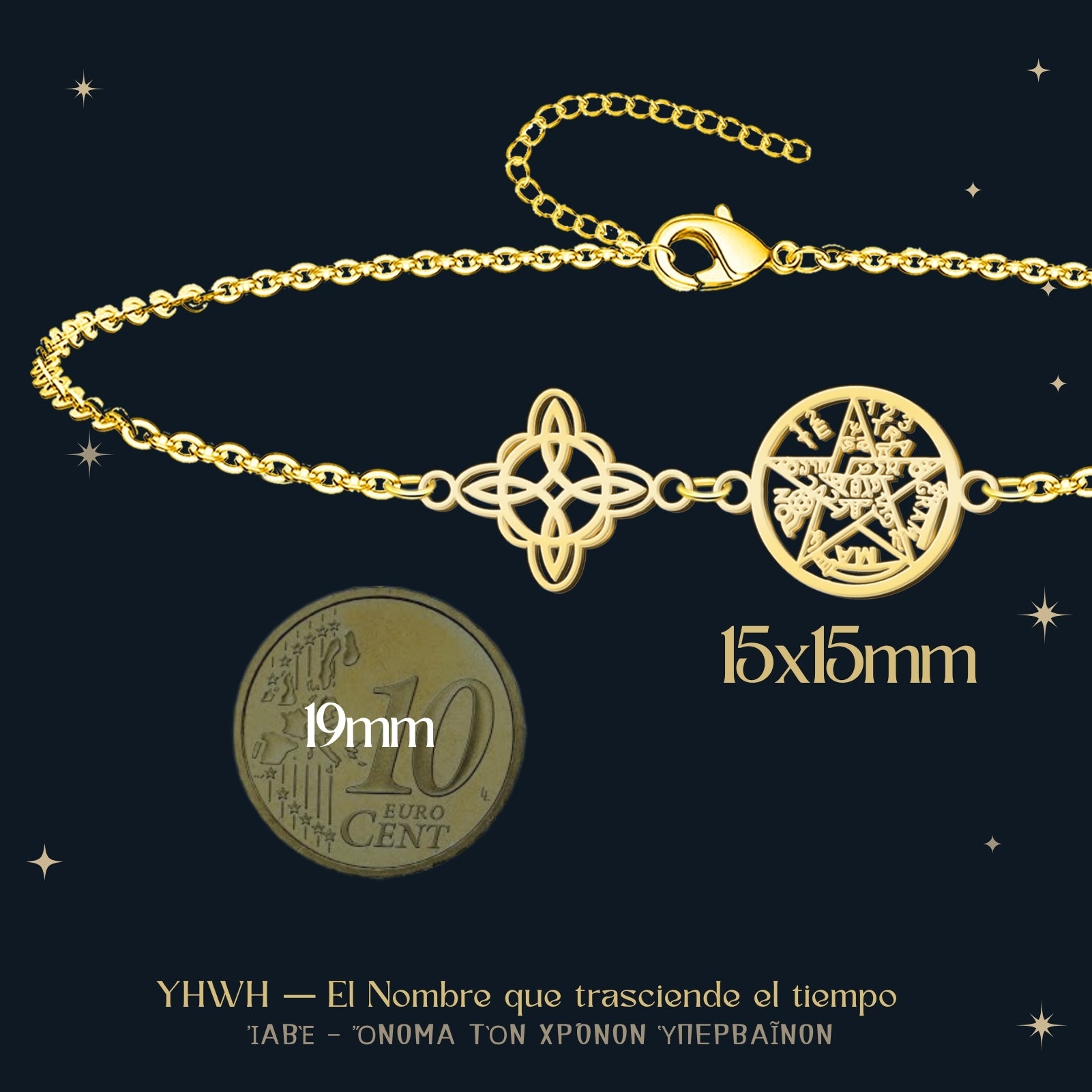 Pulsera Tetragrammaton con Nudo de Bruja | Amuleto de Protección y Energía Positiva en Acero Inoxidable