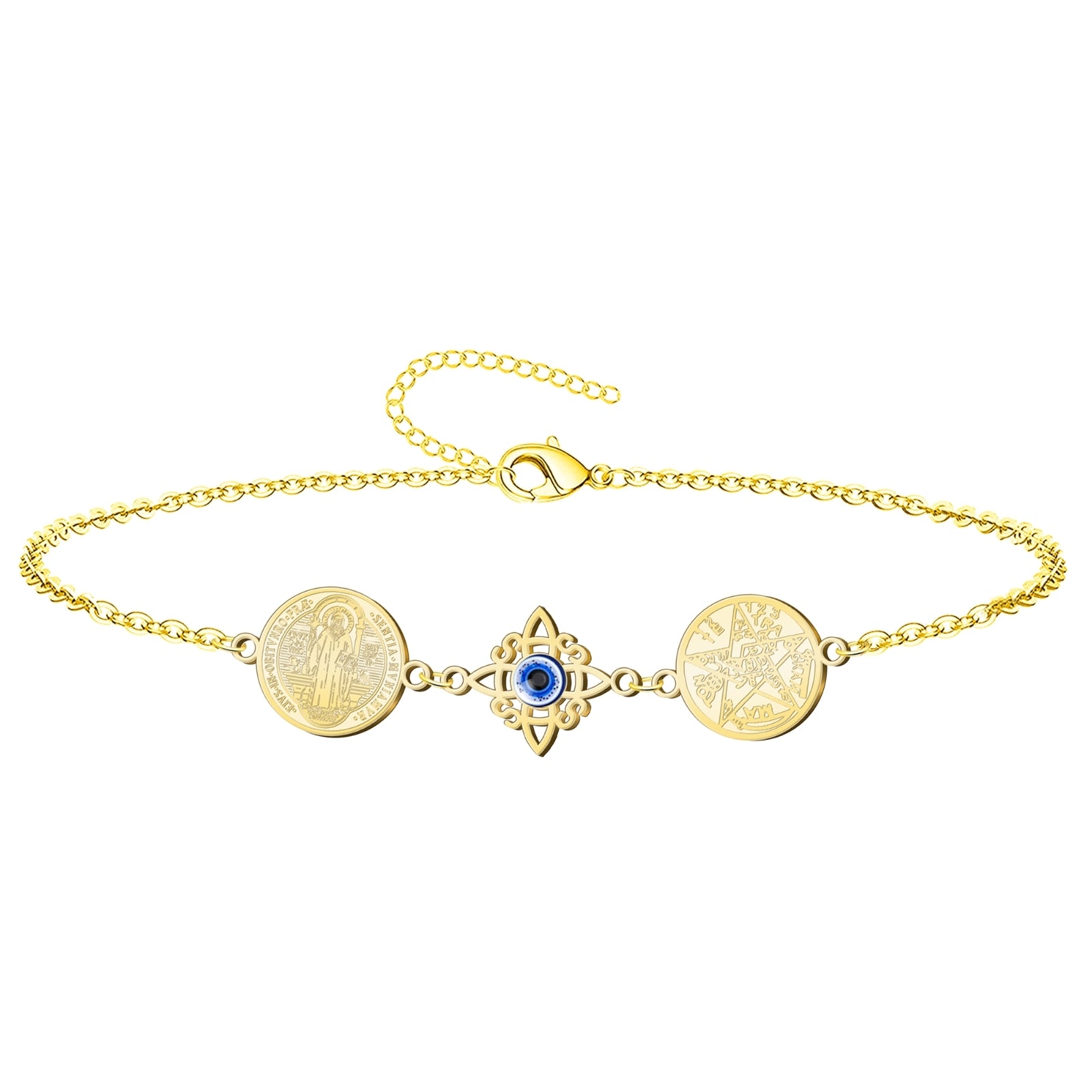 Pulsera Tetragrammaton con Nudo de Bruja y San Benito | Amuleto de Protección y Luz Divina en Acero Inoxidable