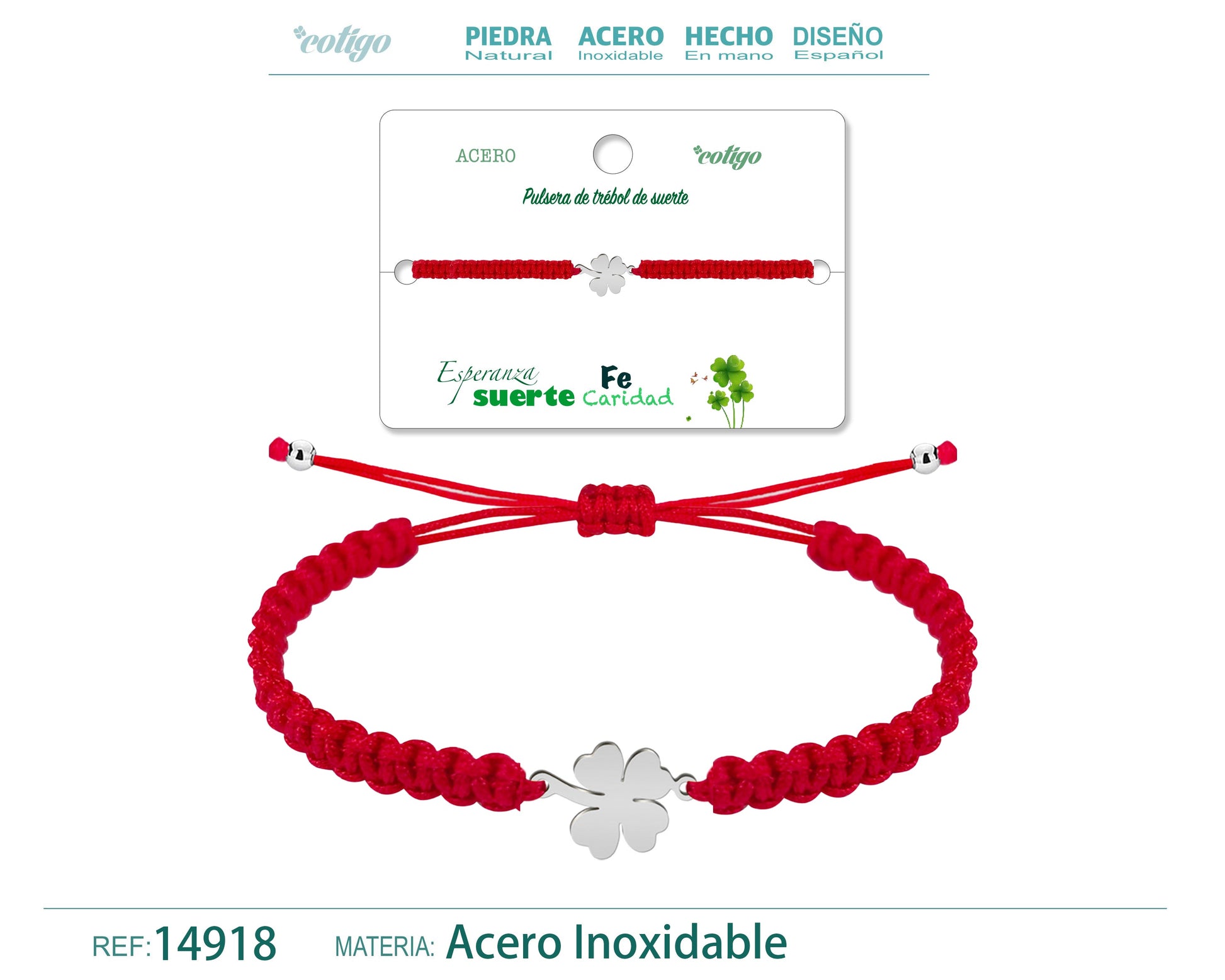 Pulseira de fio trançadoTrevo de quatro folhas vermelho-prateado