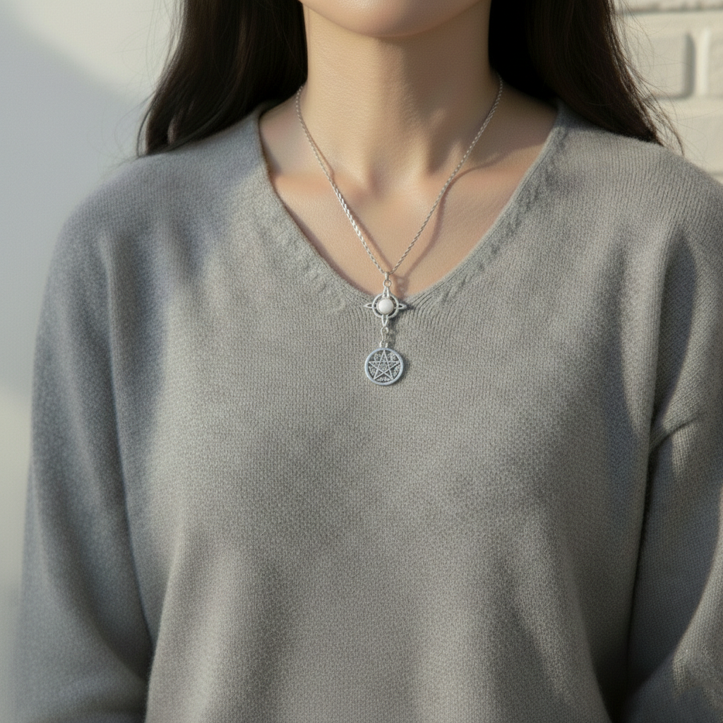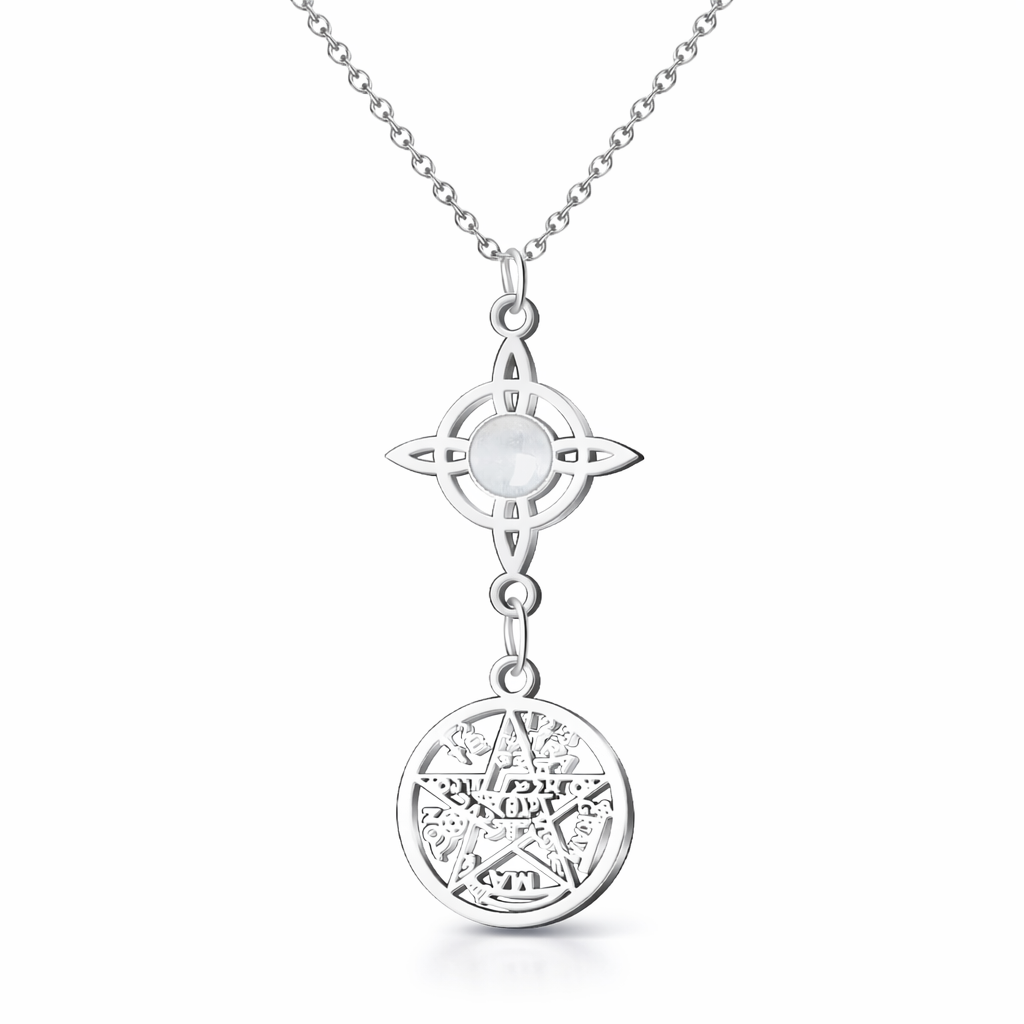(Purificación y Armonía) Este colgante es un soplo de aire fresco para tu espíritu. Une la barrera defensiva del Tetragrammaton y el Nudo de Bruja con la vibración sanadora del Cuarzo Blanco. Es una joya diseñada no para la guerra, sino para la paz; actúa disolviendo las cargas pesadas y asegurando que tu campo energético se mantenga limpio, claro y luminoso.