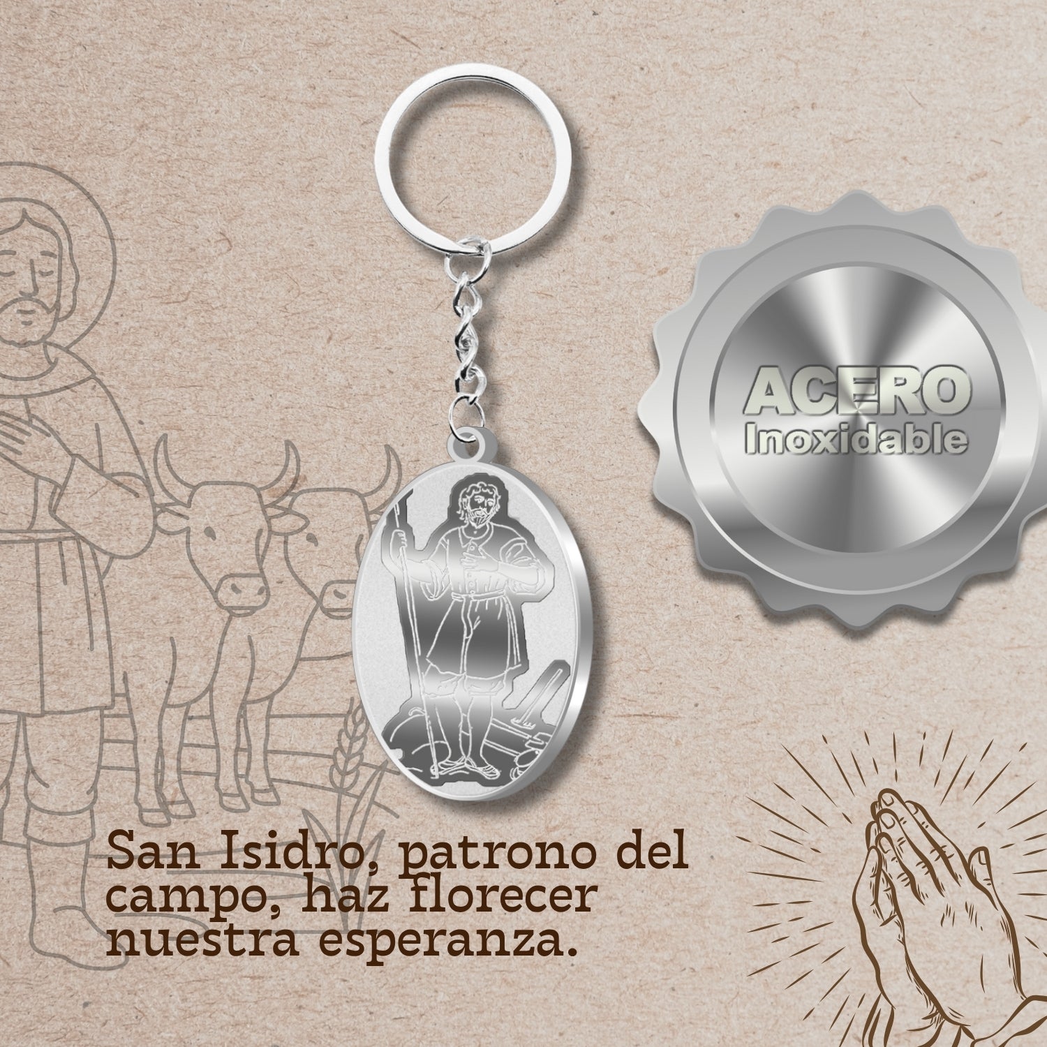 Lleva la protección de San Isidro Labrador siempre contigo con este llavero fabricado en acero inoxidable de primera calidad. Diseñado para resistir el ritmo de vida moderno y el duro trabajo diario, esta pieza combina la devoción tradicional con la durabilidad del metal más noble.