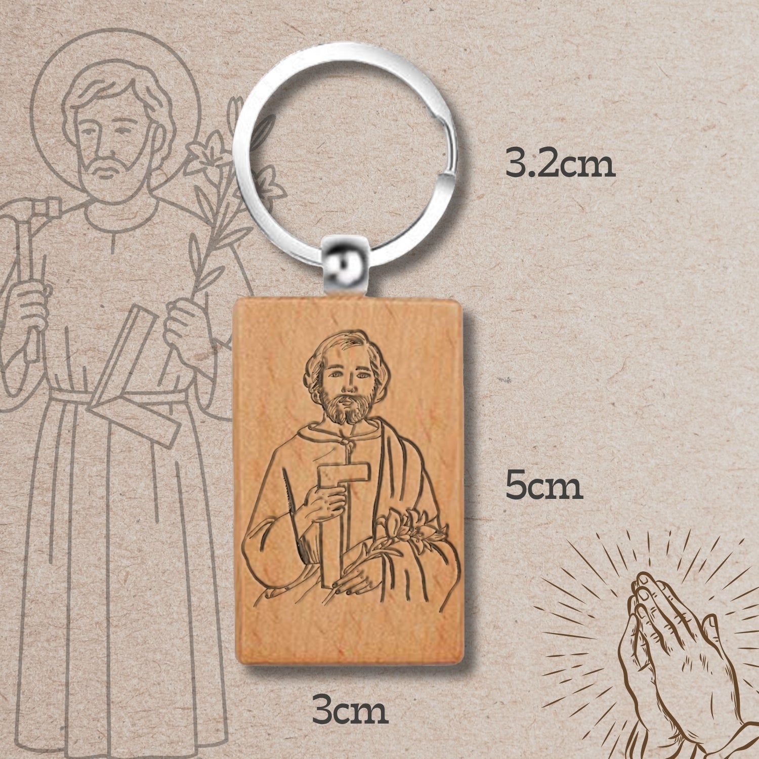 Este llavero conecta espiritualmente con la esencia misma de San José Obrero a través de su material: la madera natural. Al igual que el santo patrón trabajó este noble elemento con sus manos, este accesorio rinde tributo a su oficio de carpintero. Es una pieza que transmite calidez, sencillez y una conexión profunda con la tradición, alejándose de la frialdad de los metales industriales para ofrecerte un tacto suave y orgánico en tu día a día.
