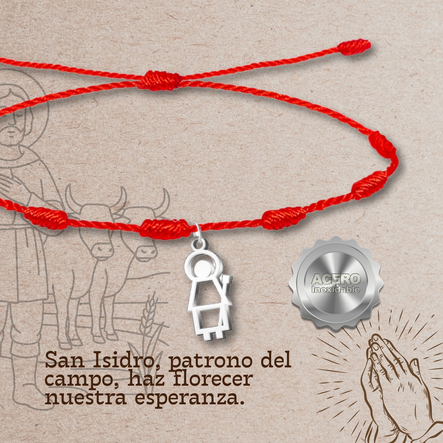 Esta pulsera no es solo un accesorio; es una declaración de intenciones. Los 7 nudos bloquean la envidia y el "mal de ojo", mientras que San Isidro guía tus manos para que nunca te falte trabajo ni sustento.