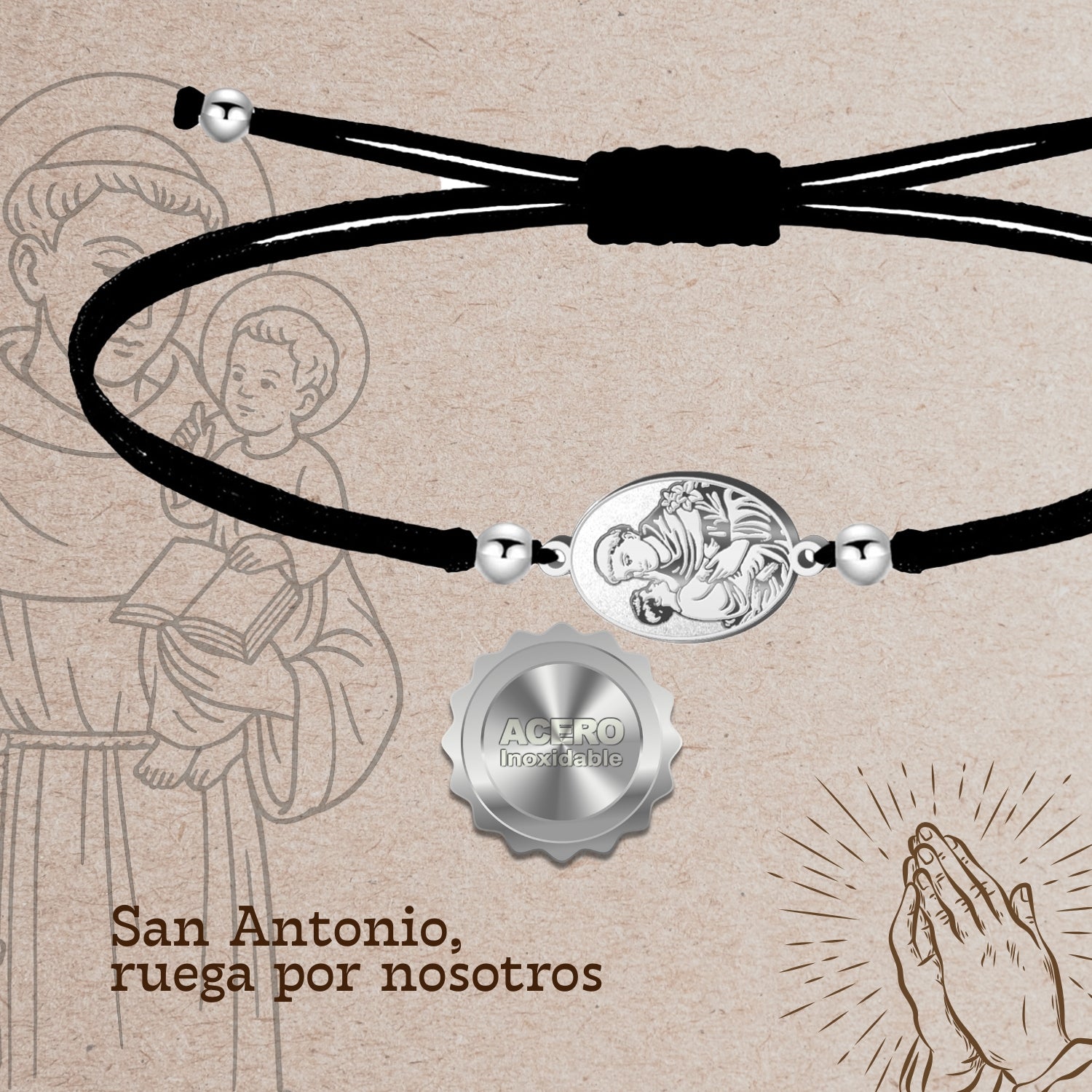 Lleva contigo la imagen venerada de San Antonio de Padua, el santo de los milagros y las causas perdidas. Esta pulsera ha sido diseñada no solo como un accesorio de moda, sino como un recordatorio tangible de fe y esperanza. La medalla central, con un grabado detallado del Santo sosteniendo al Niño Jesús y los lirios, captura la esencia de la devoción tradicional en un formato moderno y discreto.