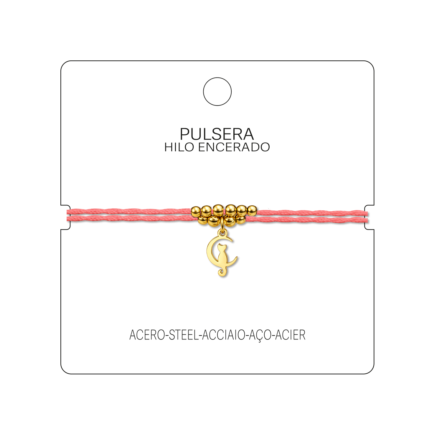 Pulsera Hilo encerado con colgante Gato Acero Dorado