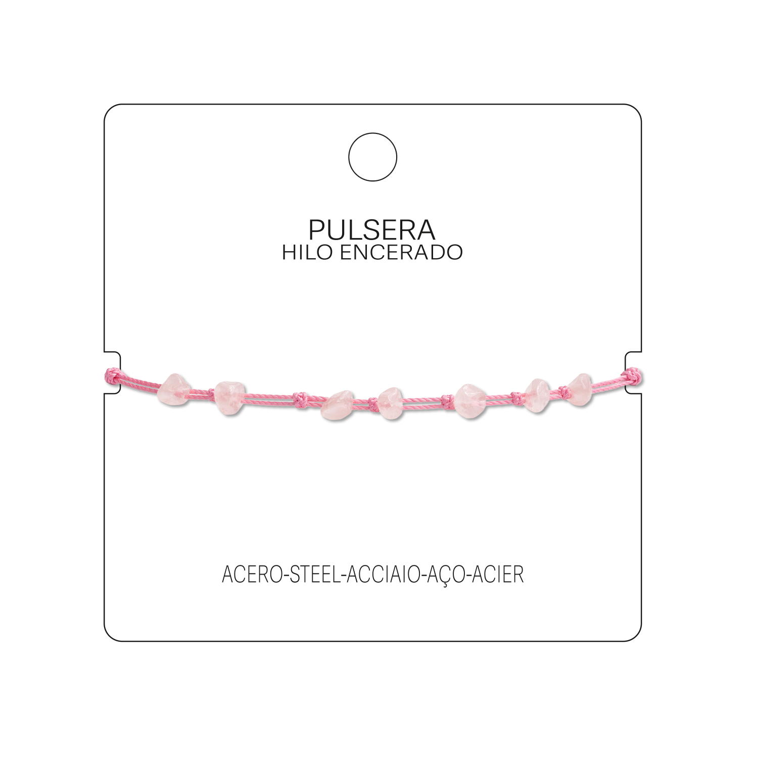 Pulsera Hilo encerado con Cuarzo Rosa - Piedra bruto Irregular
