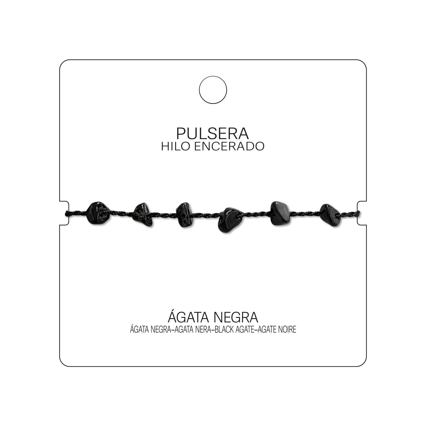 Pulsera Hilo encerado con Agata Negra - Chips de piedra